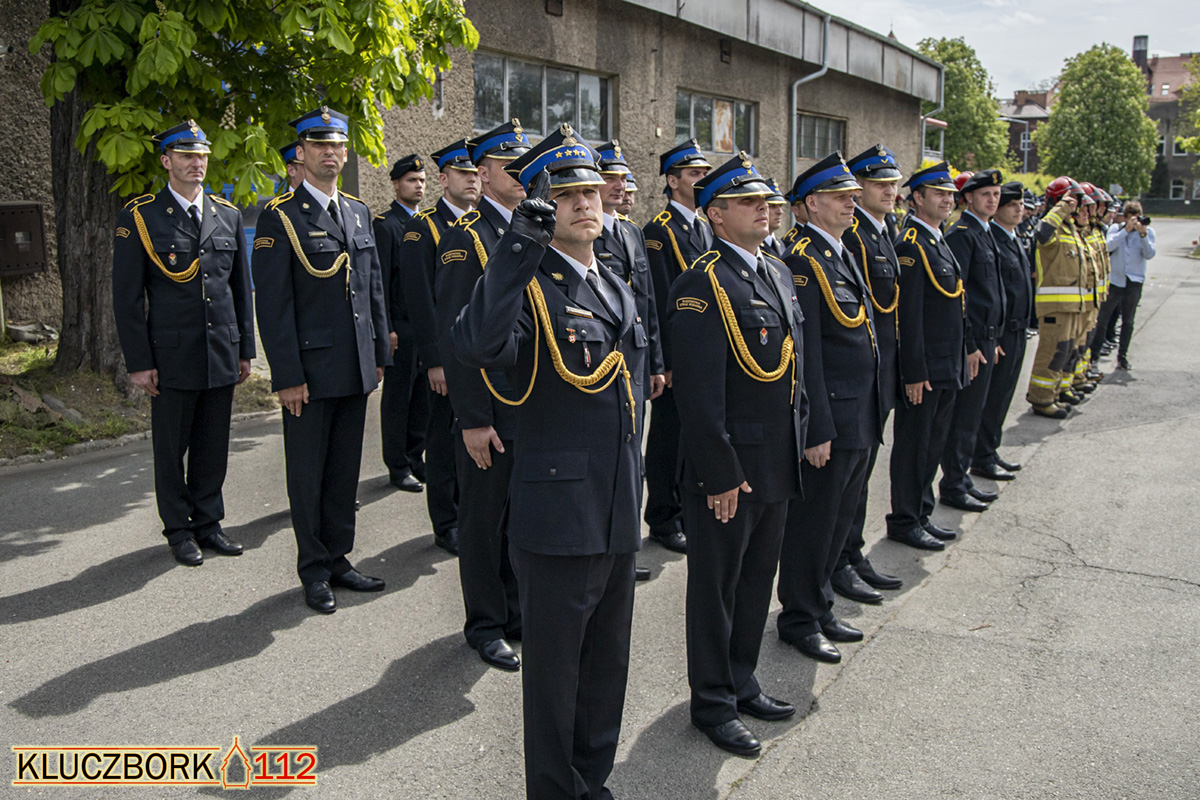 Kolejną częścią uroczystości był przemarsz strażaków ulicami Kluczborka na plac apelowy KP PSP w Kluczborku. W kolumnie marszowej znalazły się poczty sztandarowe PSP i OSP, pojazdy pożarnicze zaproszeni goście oraz sympatycy pożarnictwa. Cała formacja prowadzona była przy akompaniamencie Orkiestry Dętej z Łowkowic którą prowadzi kapelmistrz dh. Wiktor Poloczek uczestnikom towarzyszył również zespół mażoretek.