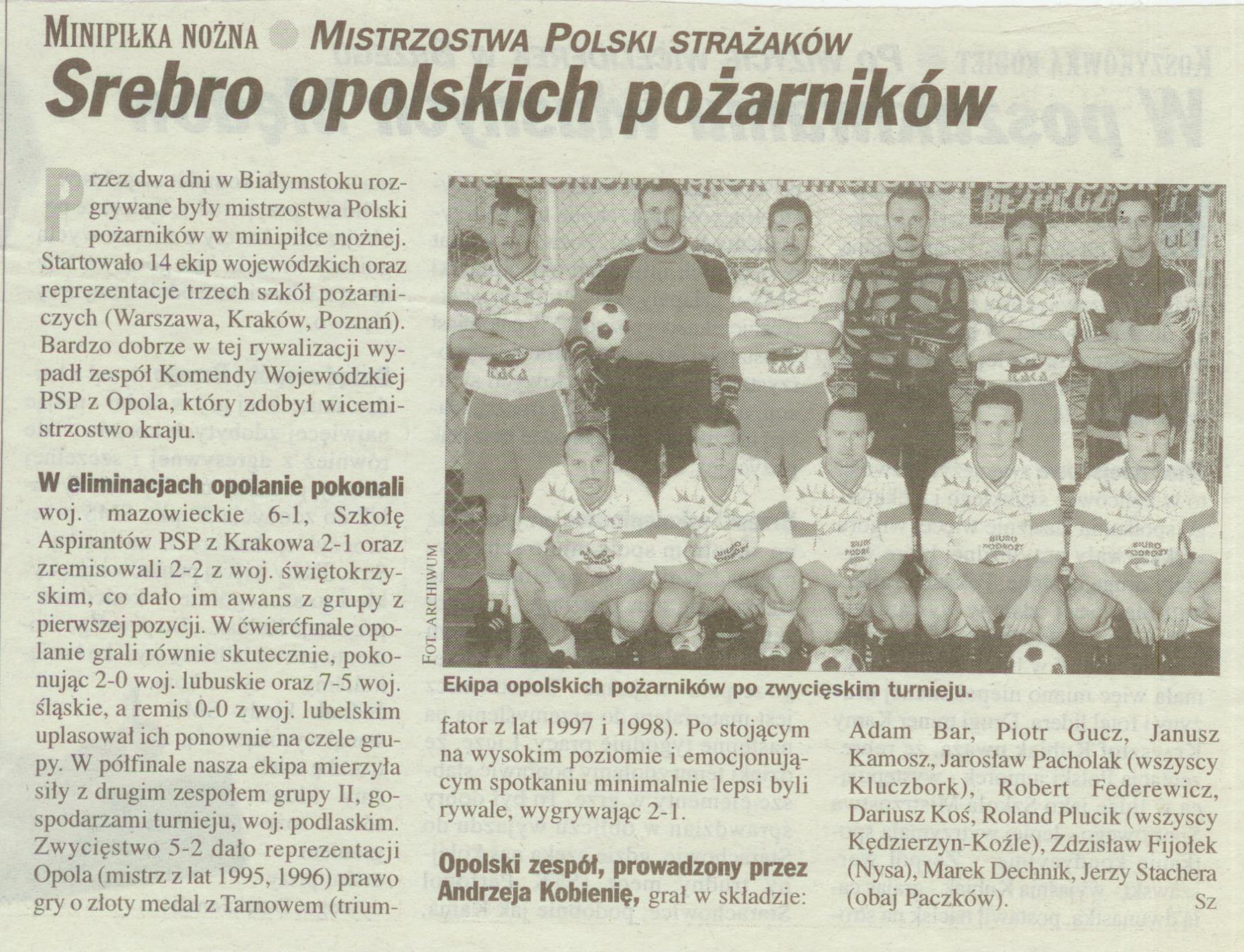 1998 – Turniej finałowy o Puchar Opolskiego Komendanta Wojewódzkiego Państwowej Straży Pożarnej w Opolu