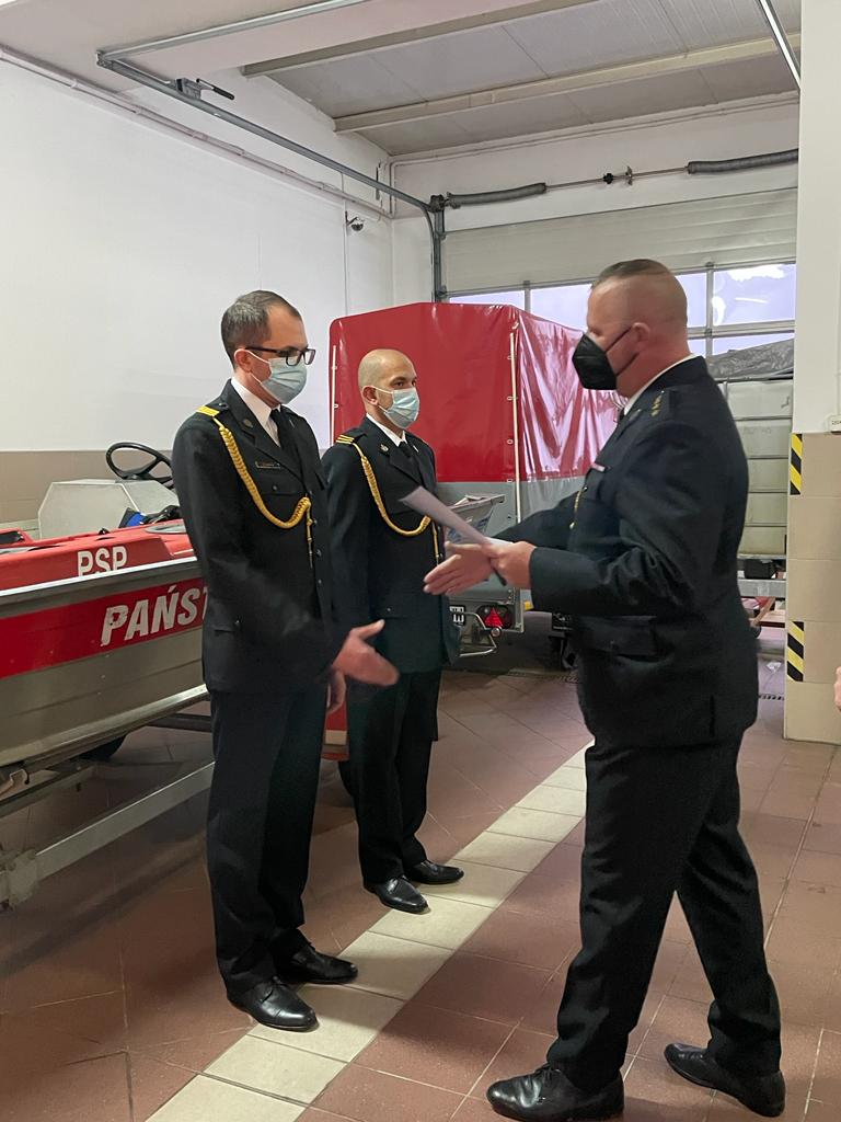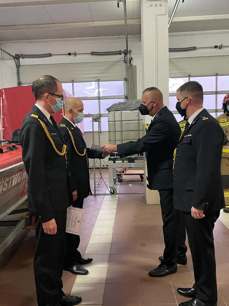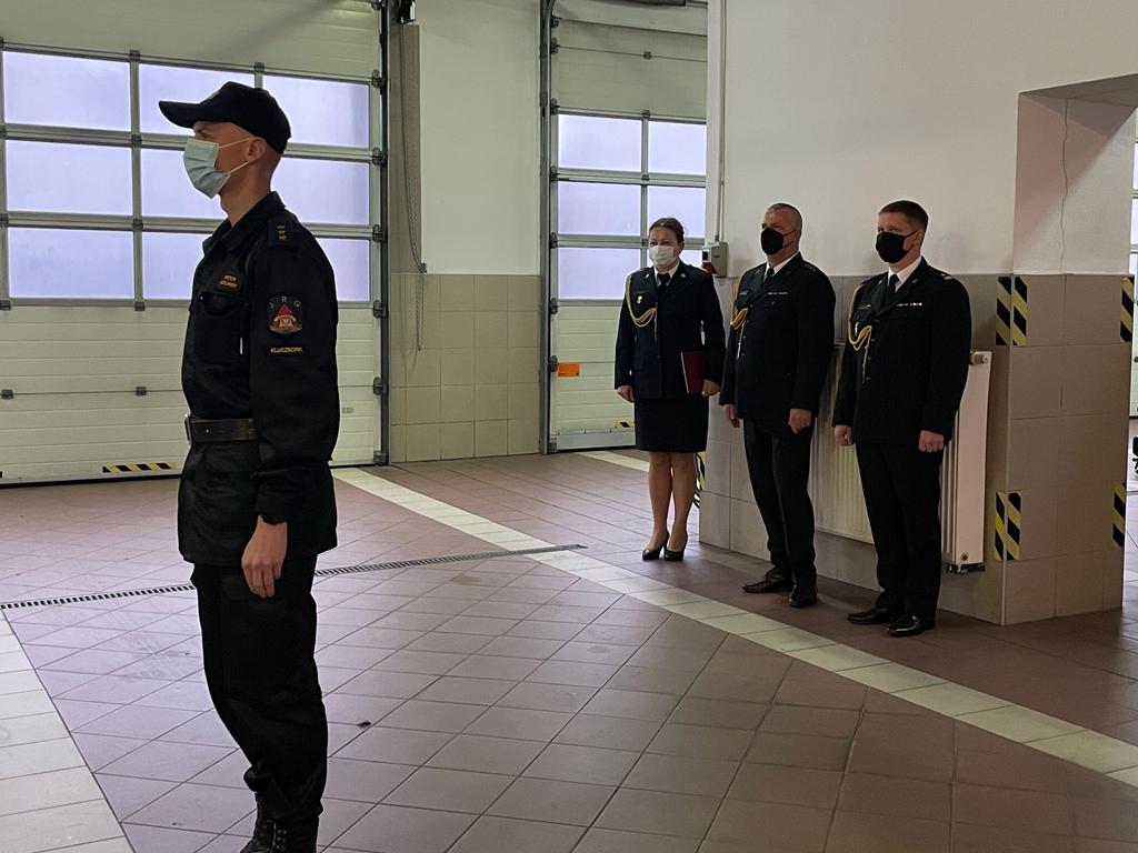 19 listopada 2021 roku w Komendzie Powiatowej Państwowej Straży Pożarnej w Kluczborku podczas uroczystej zmiany służby st. kpt. Mariusz Stępień Komendant Powiatowy PSP w obecności funkcjonariuszy i pracowników cywilnych komendy, przekazał w imieniu Opolskiego Komendanta Wojewódzkiego PSP akty mianowania na wyższe stopnie służbowe w korpusie podoficerskim. Awanse otrzymali: