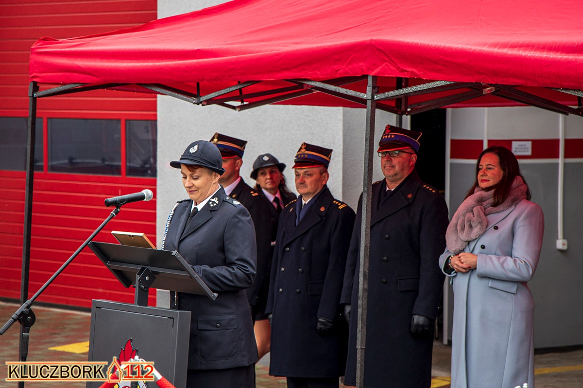 Uroczystość rozpoczęła się od złożenia meldunku Zastępcy Opolskiego Komendanta Wojewódzkiego PSP st. bryg. Wojciechowi Nawarze przez kpt. Patryka Szklannego - Zastępcę Dowódcy JRG Kluczbork.