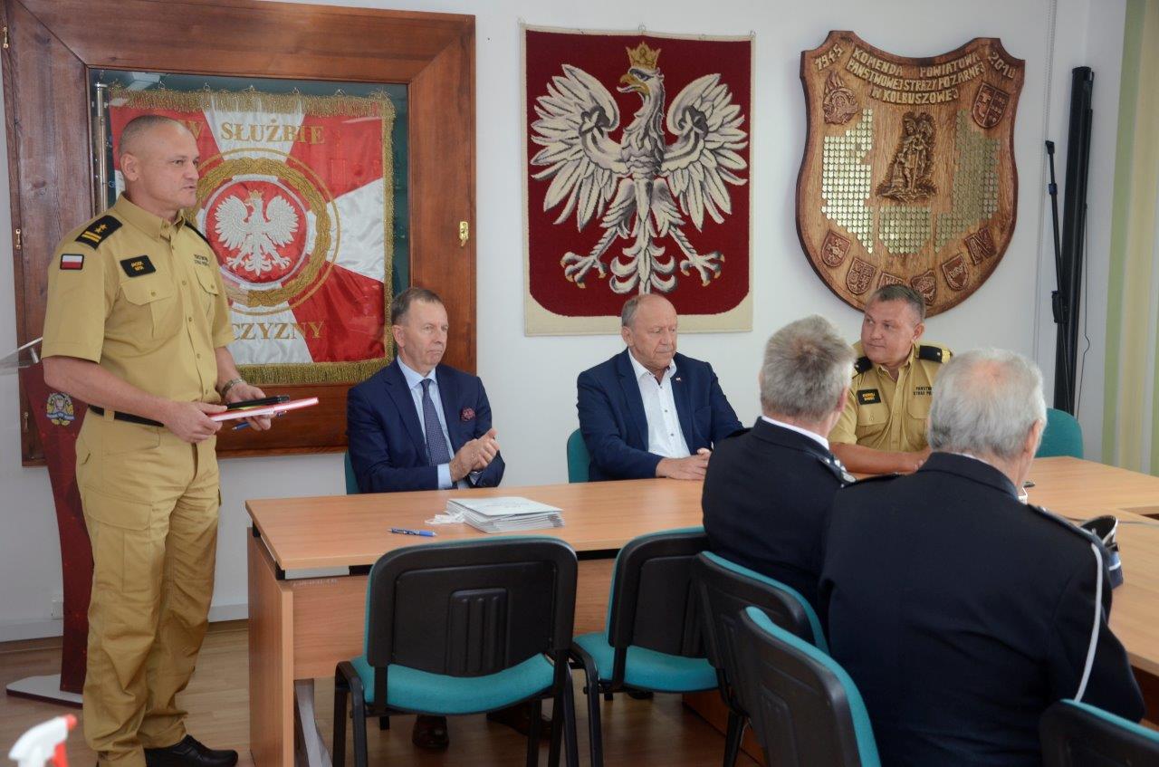 3 sierpnia 2021 r. w Komendzie Powiatowej Państwowej Straży Pożarnej w Kolbuszowej, odbyło się podpisanie i przekazanie umów na dofinansowanie zadania realizowanego w ramach programu „Ogólnopolski program finansowania służb ratowniczych. Cześć 2) Dofinansowanie zakupu sprzętu i wyposażenia jednostek Ochotniczych Straży Pożarnych” z udziałem środków udostępnionych przez Narodowy Fundusz Ochrony Środowiska i Gospodarki Wodnej dla Wojewódzkiego Funduszu Ochrony Środowiska i Gospodarki Wodnej w Rzeszowie. Celem programu zwanego „Mały Strażak” jest doposażenie jednostek Ochotniczych Straży Pożarnych celem zwiększenia potencjału technicznego.