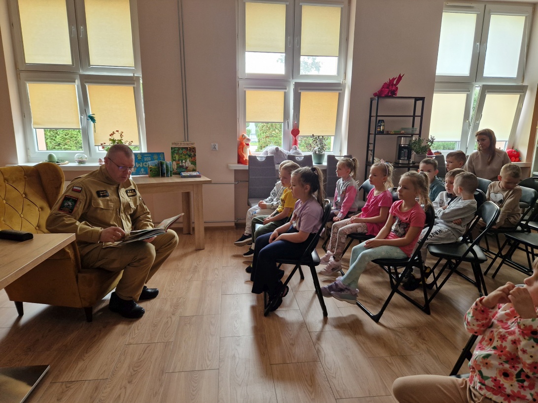 Po lekturze zaznajomiono młodych słuchaczy z tajnikami pracy strażaka.
