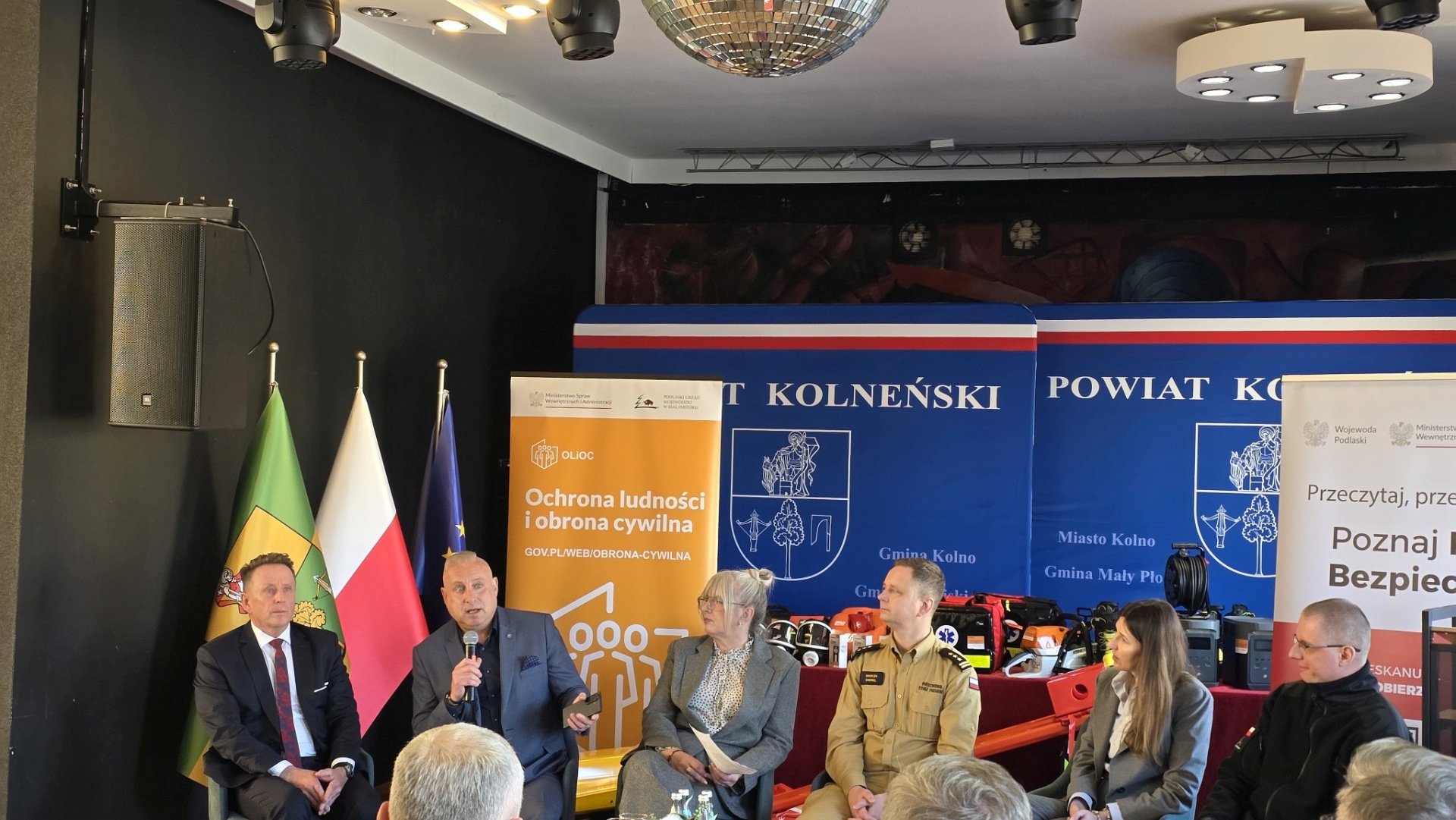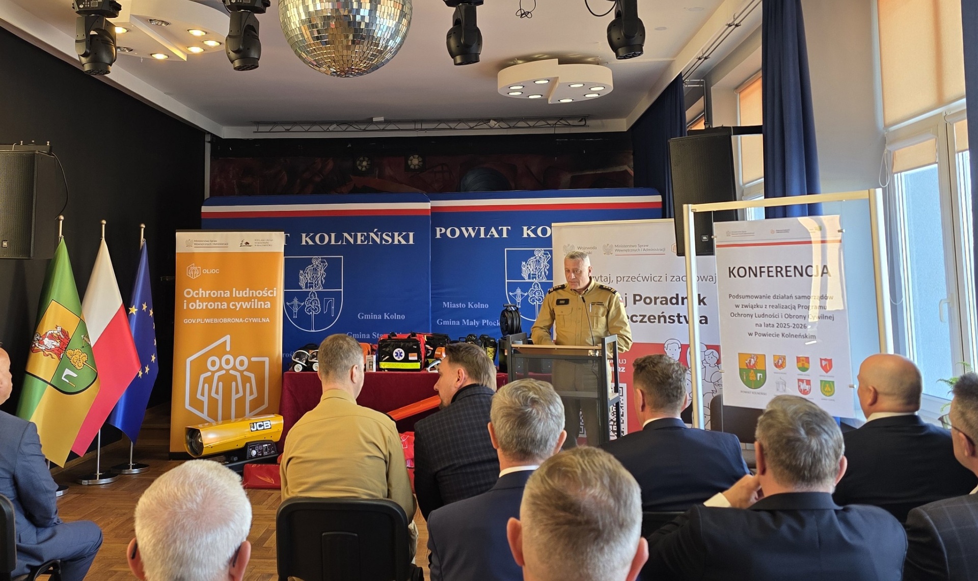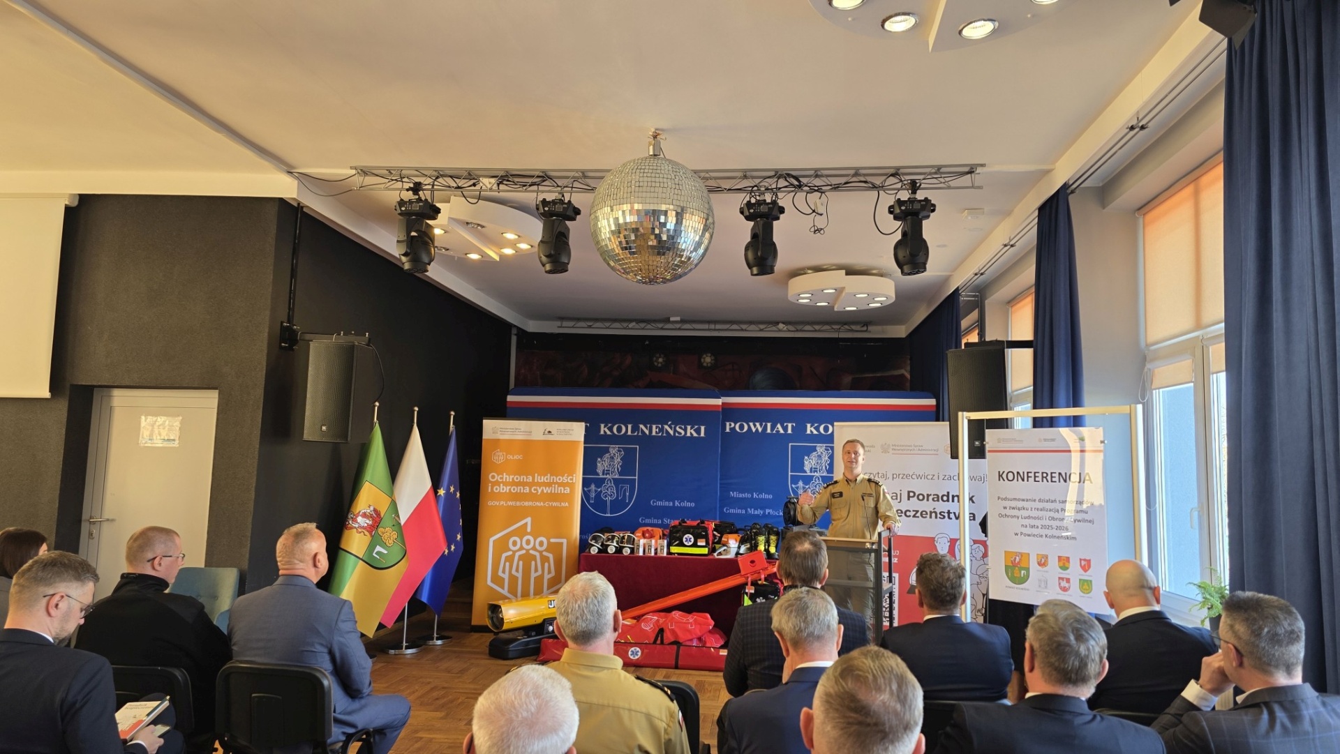W dniu 16 kwietnia br. na zaproszenie starosty kolneńskiego, kadra kierownicza oraz funkcjonariusze Komendy Powiatowej Państwowej Straży Pożarnej w Kolnie uczestniczyli w konferencji dotyczącej, realizacji Programu Ochrony Ludności i Obrony Cywilnej na lata 2025-2026 na terenie województwa podlaskiego. Konferencja odbyła się w Sali Kolneńskiego Ośrodka Kultury i Sportu w Kolnie i była ona kolejną z cyklu konferencji rozpoczętych przez Pana Jacka Brzozowskiego – wojewodę podlaskiego.
