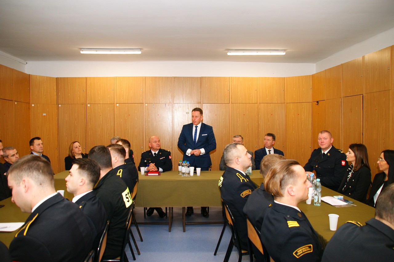 9 lutego br. w siedzibie Komendy Powiatowej Państwowej Straży Pożarnej w Kolnie odbyła się odprawa roczna podsumowującą stan bezpieczeństwa ochrony przeciwpożarowej na terenie powiatu kolneńskiego za 2022rok. W naradzie oprócz pracowników cywilnych i funkcjonariuszy komendy, udział wzięli zaproszeni goście w osobach: Zastępcy Podlaskiego Komendanta Wojewódzkiego Państwowej Straży Pożarnej – bryg. Marcina Bielakowicza, Starosty Kolneńskiego – Tadeusza Klama, przedstawicieli władz samorządowych w osobach Pań, Panów burmistrzów, wójtów oraz osób ich reprezentujących.
