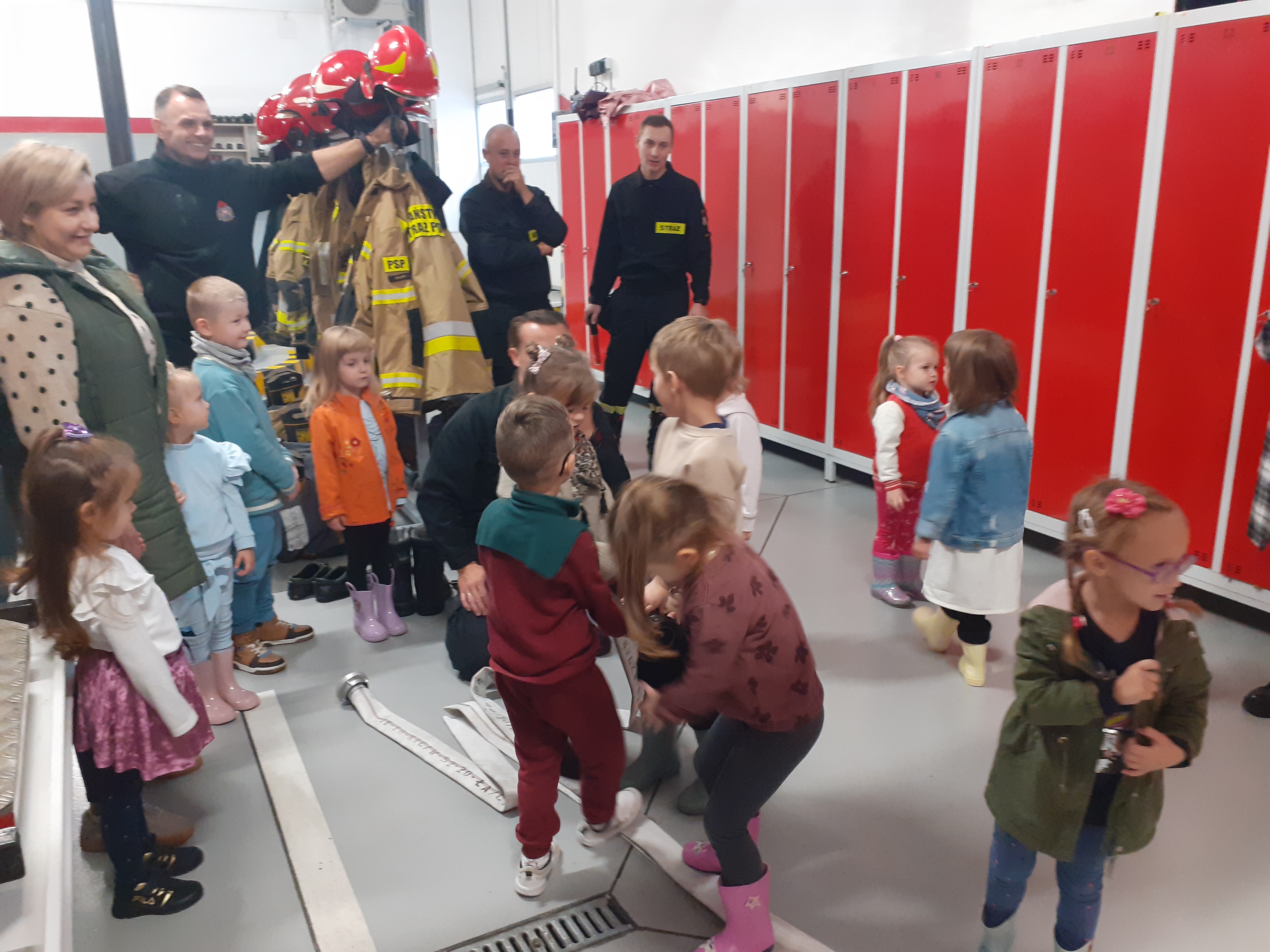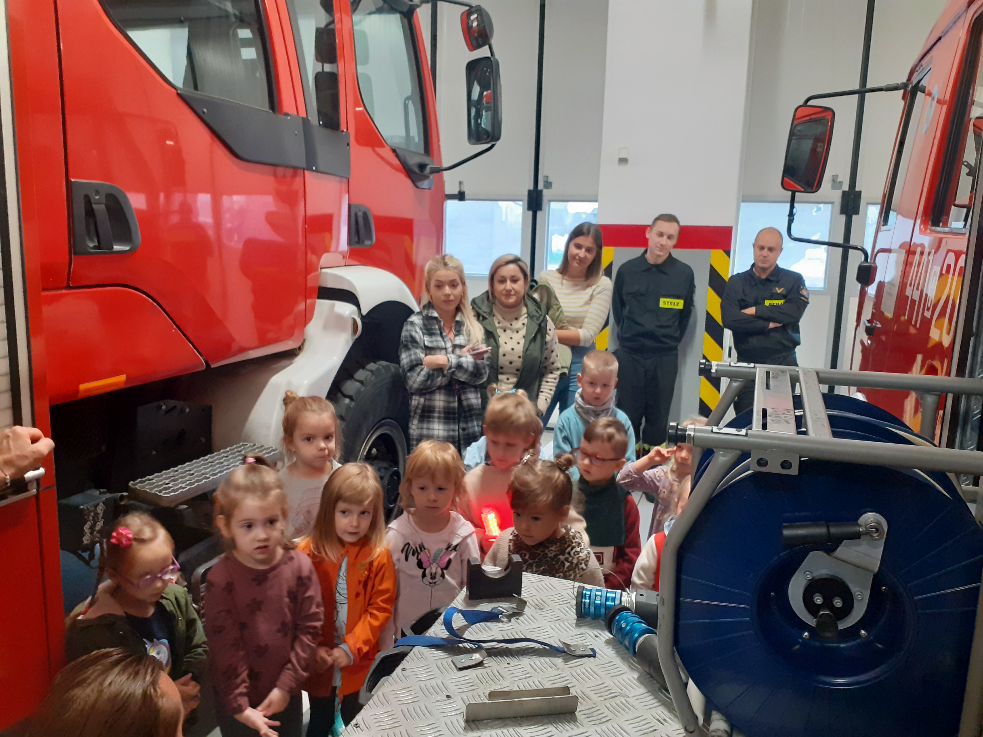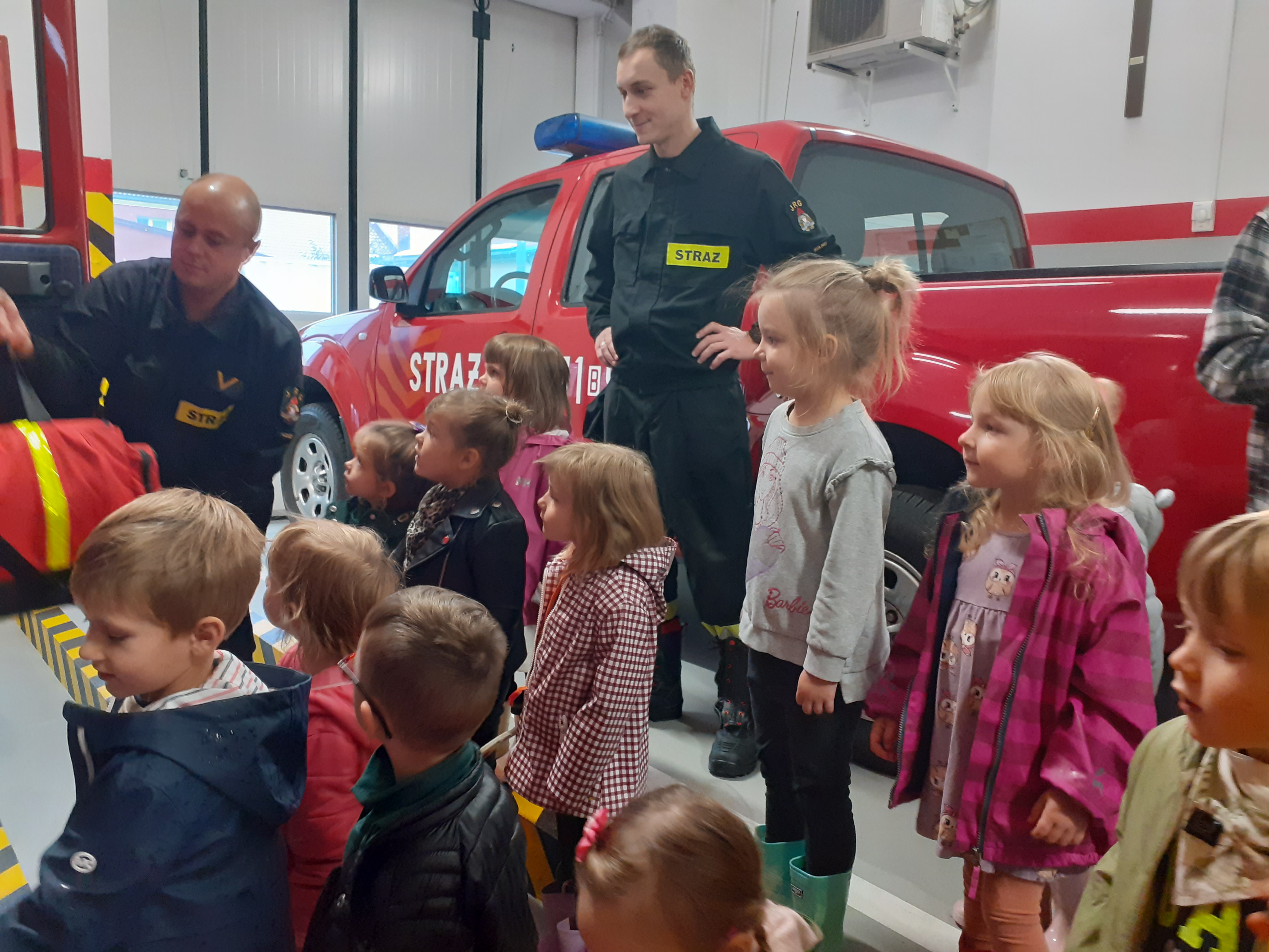 Mali goście mieli możliwość zobaczyć samochody i sprzęt strażacki będący na wyposażeniu Państwowej Straży Pożarnej oraz zwiedziły stanowisko kierowania, w którym odbiera się zgłoszenia o pożarach i wypadkach. Dzieci dowiedziały się także, jak wygląda codzienna służba strażaków oraz wysłuchały porad w zakresie bezpiecznego zachowania w sytuacjach zagrożenia. Największe wrażenie na najmłodszych zrobił symulowany alarm bojowy, w trakcie którego zobaczyli cały proces od ogłoszenia alarmu do momentu wyjazdu pojazdów ratowniczych do działań.