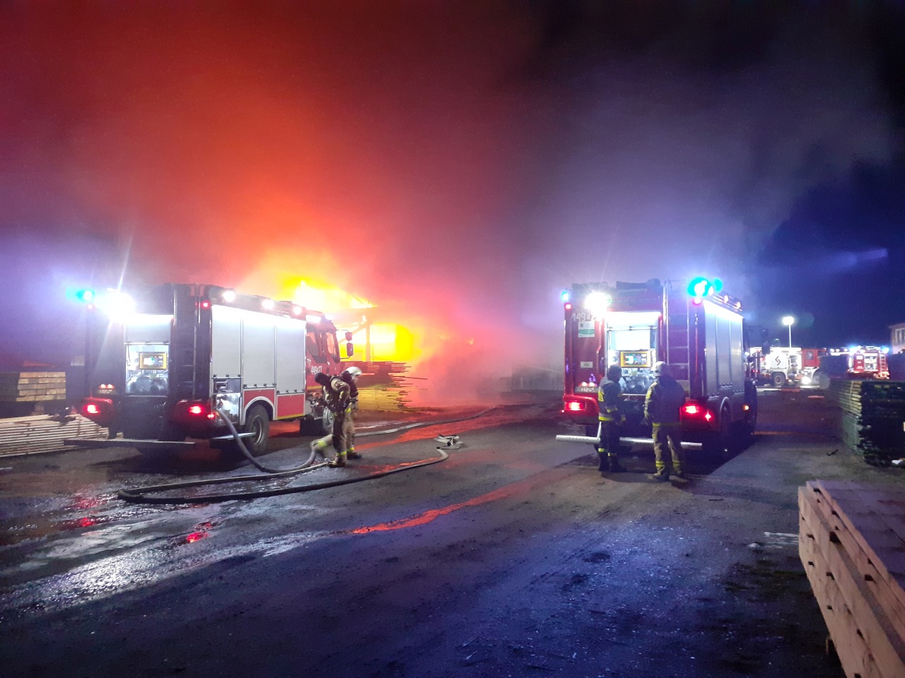 W dniu 02.02.2023r. o godzinie 4:43 do SKKP PSP w Kolnie wpłynęło zgłoszenie o pożarze samochodu ciężarowego znajdującego się na terenie tartaku w miejscowości Czerwone w gminie Kolno. Po przybyciu pierwszych zastępów na miejsce zdarzenia stwierdzono, że pożarem objęty jest samochód ciężarowy znajdujący się w garażu oraz przyległy do niego magazyn z drewnem. W wyniku rozpoznania ustalono, że pożarem objęte jest 1/3 budynku magazynowego w którym znajduje się ok. 100 m3 składowanego drewna. Budynek o wymiarach 73x10x7m. W związku z dużą ilością materiału zgromadzonego w obiekcie znacząco wydłużał się czas prowadzonych działań. Zaopatrzenie wodne stanowiła sieć hydrantowa w miejscowości Czerwone oraz Kolno. Na miejsce zdarzenia przybyła Grupa Operacyjna Podlaskiego Komendanta Wojewódzkiego. W wyniku pożaru śmierć poniósł mężczyzna w wieku 52 lat. W działaniach udział brało 10 zastępów PSP oraz 11 zastępów z OSP, łącznie 21 pojazdów i 73 strażaków. Straty oszacowano na 1,15mln zł, zaś uratowane mienie wyceniono na 1mln zł.