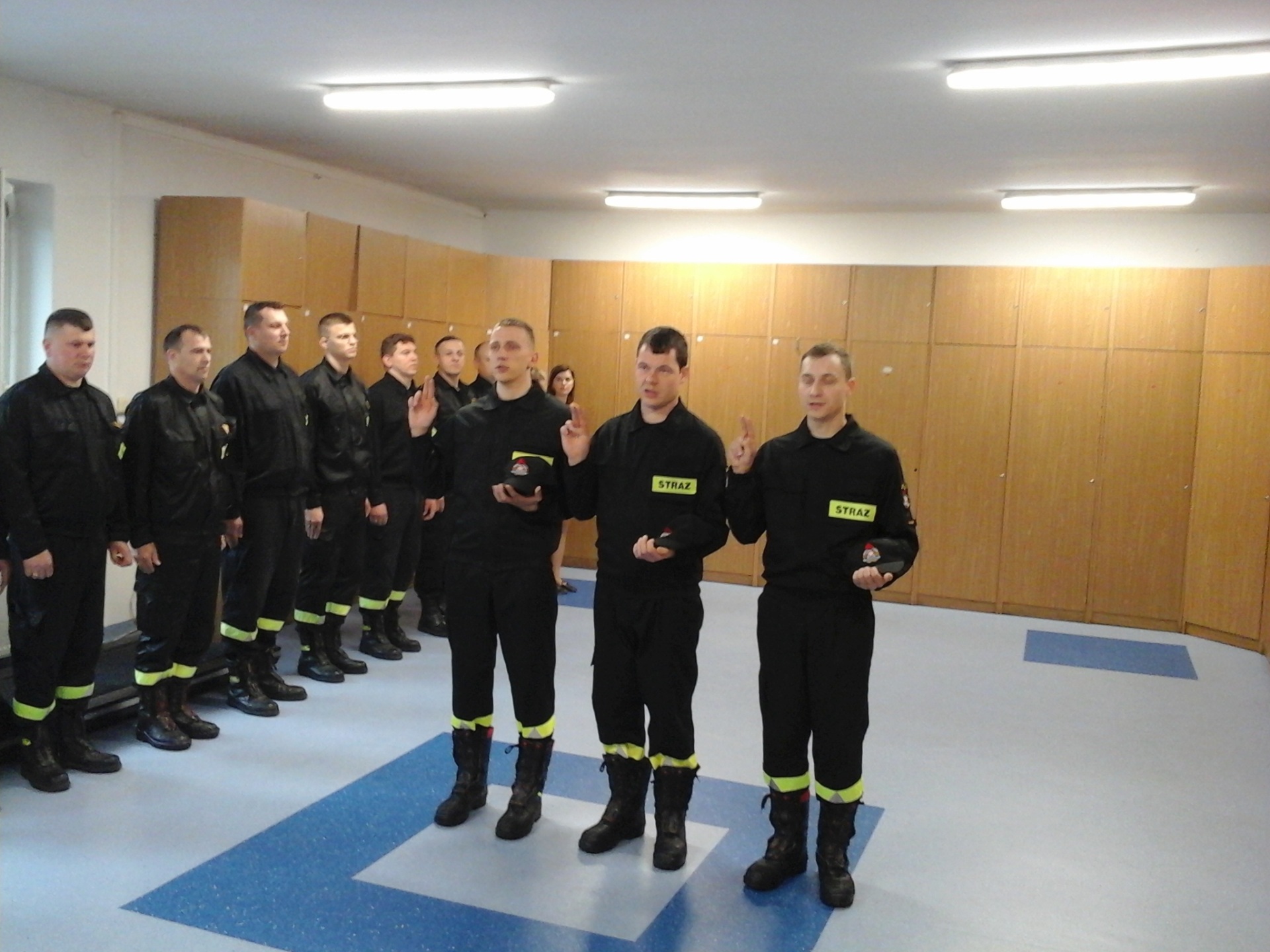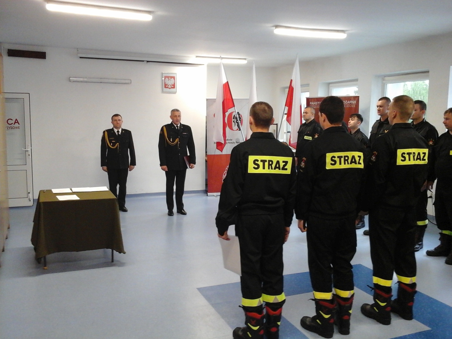 Ślubowanie przyjął Komendant Powiatowy PSP st. bryg. Paweł Pupek w obecności Zastępcy Dowódcy Jednostki Ratowniczo – Gaśniczej mł. bryg. Mariusza Mieczkowskiego.