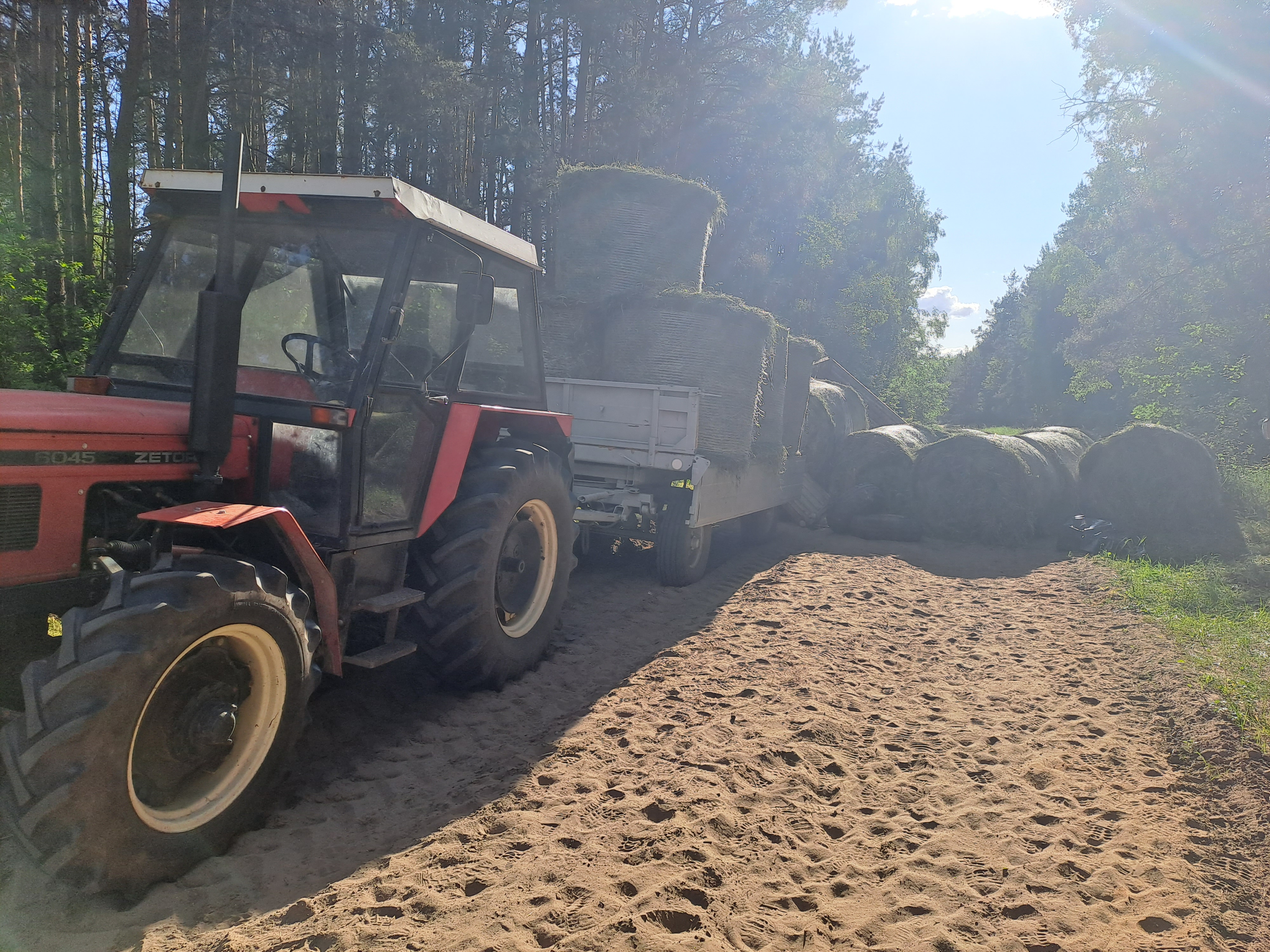 O godzinie 16:26 zastępy z JRG Kolno oraz OSP KSRG Mały Płock zostały zadysponowane do zdarzenia w miejscowości Chludnie, gmina Mały Płock. Po przybyciu na miejsce zdarzenia stwierdzono, że na piaszczystej drodze gminnej stoi ciągnik rolniczy z dwiema przyczepami przewożącymi bele siana. Przy drugiej z nich, pochylonej na lewy bok, leżały na drodze bele i mężczyzna nie dający oznak życia. Na miejscu jest już Policja i ZRM, który prowadzi medyczne czynności ratunkowe. Z relacji świadka - współpasażera - wynikało, że mężczyźni próbowali zmienić uszkodzone koło w przyczepie i w pewnym momencie nastąpiło niekontrolowane przechylenie się przyczepy. W wyniku tego wypadło z niej kilka bel, z czego jedna spowodowała uraz jednego z mężczyzn, utratę przytomności i zatrzymanie krążenia. Działania przybyłych zastępów polegały na zabezpieczeniu miejsca zdarzenia oraz wyznaczeniu lądowiska dla śmigłowca LPR i koordynowaniu jego lądowania. Niestety mężczyzny nie udało się uratować.