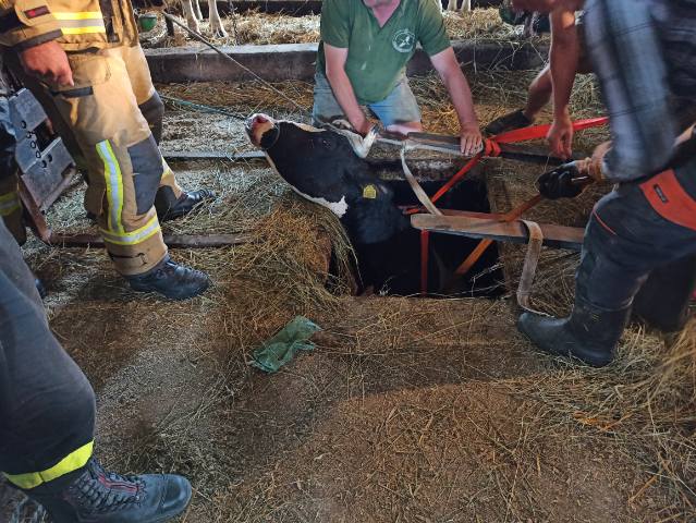 Działania straży pożarnej polegały na zabezpieczeniu miejsca zdarzenia, sprawdzeniu poziomu gazów niebezpiecznych (nie stwierdzono) oraz tlenu (w normie), a następnie przy pomocy ciągnika rolniczego z ładowaczem czołowym, krowę uniesiono na pasach i wyciągnięto ze zbiornika na zewnątrz, gdzie przejął ją właściciel.