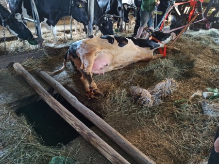 w Kolnie wpłynęła informacja, że w miejscowości Stare Kiełcze gm. Kolno w wyniku zarwania się drewnianej pokrywy, do zbiornika na gnojowicę wpadła krowa. Do zdarzenia zadysponowano 2 zastępy z Jednostki Ratowniczo – Gaśniczej PSP Kolno oraz OSP KSRG Lachowo