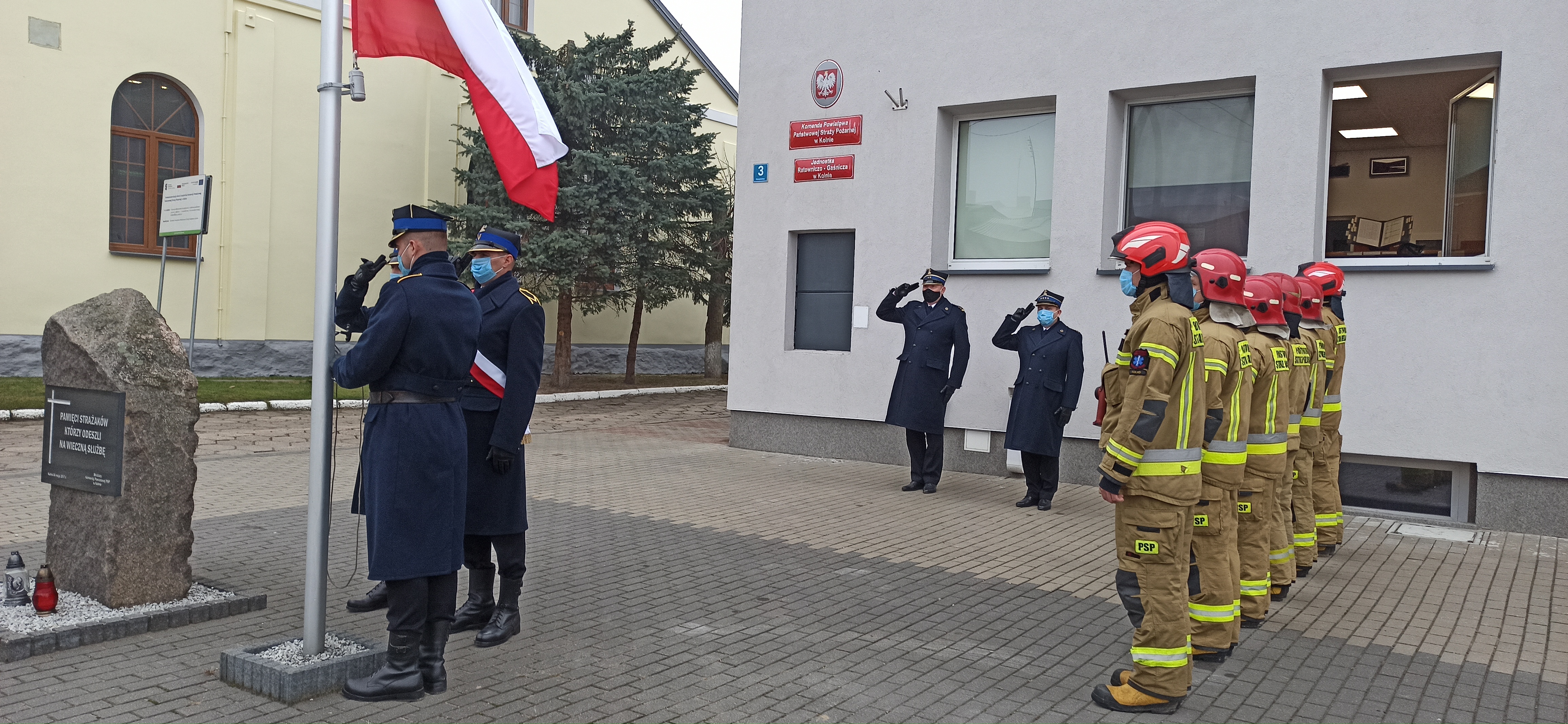 Punktualnie o godzinie 1200 przed budynkiem Komendy Powiatowej Państwowej Straży Pożarnej w Kolnie, w ramach akcji "Niepodległa do hymnu" dokonano uroczystego podniesienia flagi państwowej na maszt oraz odśpiewania hymnu państwowego. W uroczystości udział brała zmiana służbowa, bryg. Tomasz Sielawa, Zastępca Komendanta Powiatowego PSP w Kolnie oraz st. kpt. Mariusz Mieczkowski, Zastępca Dowódcy Jednostki Ratowniczo - Gaśniczej PSP w Kolnie.