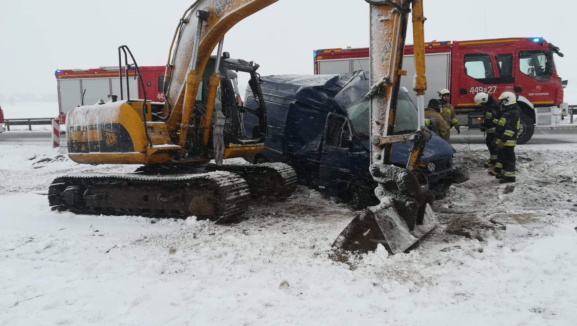 koparce nie było operatora, natomiast busem podróżował tylko kierujący, który o własnych siłach wyszedł z pojazdu przed przybyciem JOP i uskarżał się na lekki dyskomfort w lewym barku. Działania zastępów