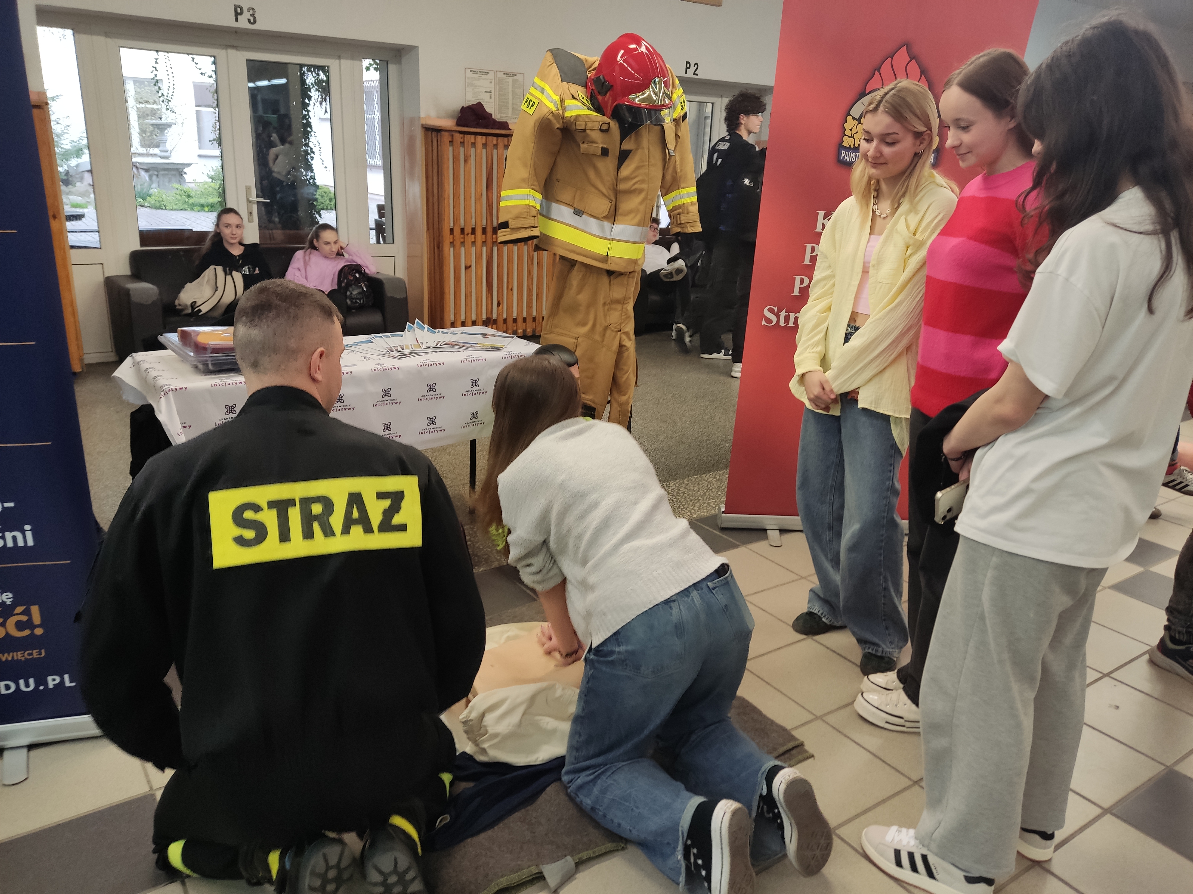 Dnia 09 kwietnia 2025 r. w Liceum Ogólnokształcącym im. Kazimierza Wielkiego w Kole odbyły się Targi Akademickie Uczelni Wyższych, Służb Mundurowych, Szkól Policealnych. Podczas targów swoją ofertę zaprezentowało kilkanaście publicznych i niepublicznych uczelni wyższych, służb mundurowych, a także instytucji szkoleniowych. Komenda Powiatowa PSP w Kole również zorganizowała swoje stoisko. Funkcjonariuszki Wydziału Kwatermistrzowsko - Kadrowego Komendy Powiatowej PSP w Kole mł. bryg. Joanna Wolna i mł. kpt. Katarzyna Wojciechowska propagowały zawód oficera PSP poprzez zapoznawanie zainteresowanych z procedurami naboru do Akademii Pożarniczej w Warszawie – zarówno studia mundurowe jak i cywilne oraz do Szkół Aspirantów Państwowej Straży Pożarnej. Prowadzące stoisko udzielały szczegółowych informacji dotyczących specyfiki zawodu strażaka oraz rozdawały materiały związane z zasadami rekrutacji do szkół pożarniczych. St. str. Jakub Spych przeprowadził również pokaz udzielania instruktażu pierwszej pomocy przedmedycznej oraz zaprezentował pokaz prowadzenia resuscytacji krążeniowo-oddechowej u dorosłego z użyciem automatycznego defibrylatora zewnętrznego „AED”. Stoisko cieszyło się dużym zainteresowaniem. |