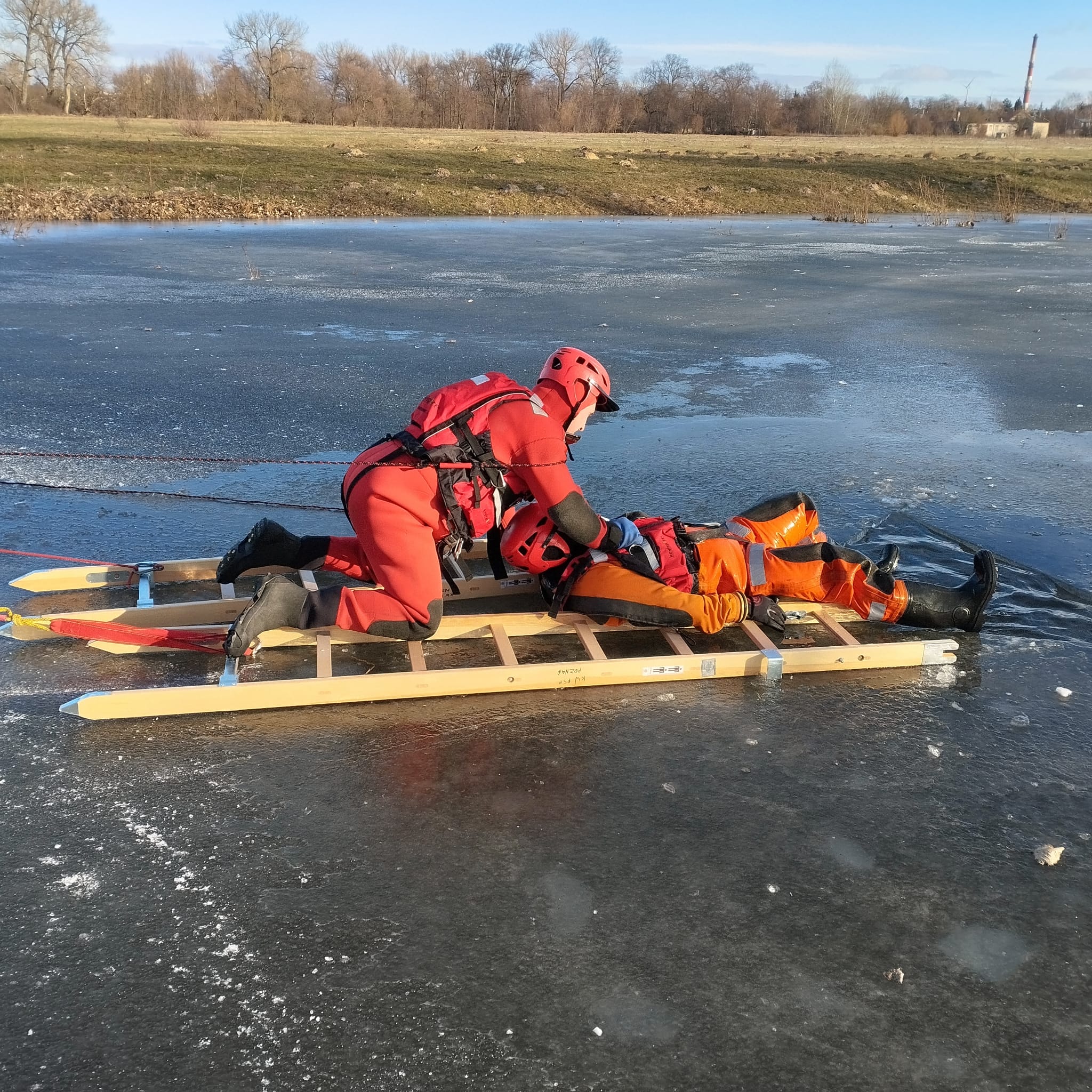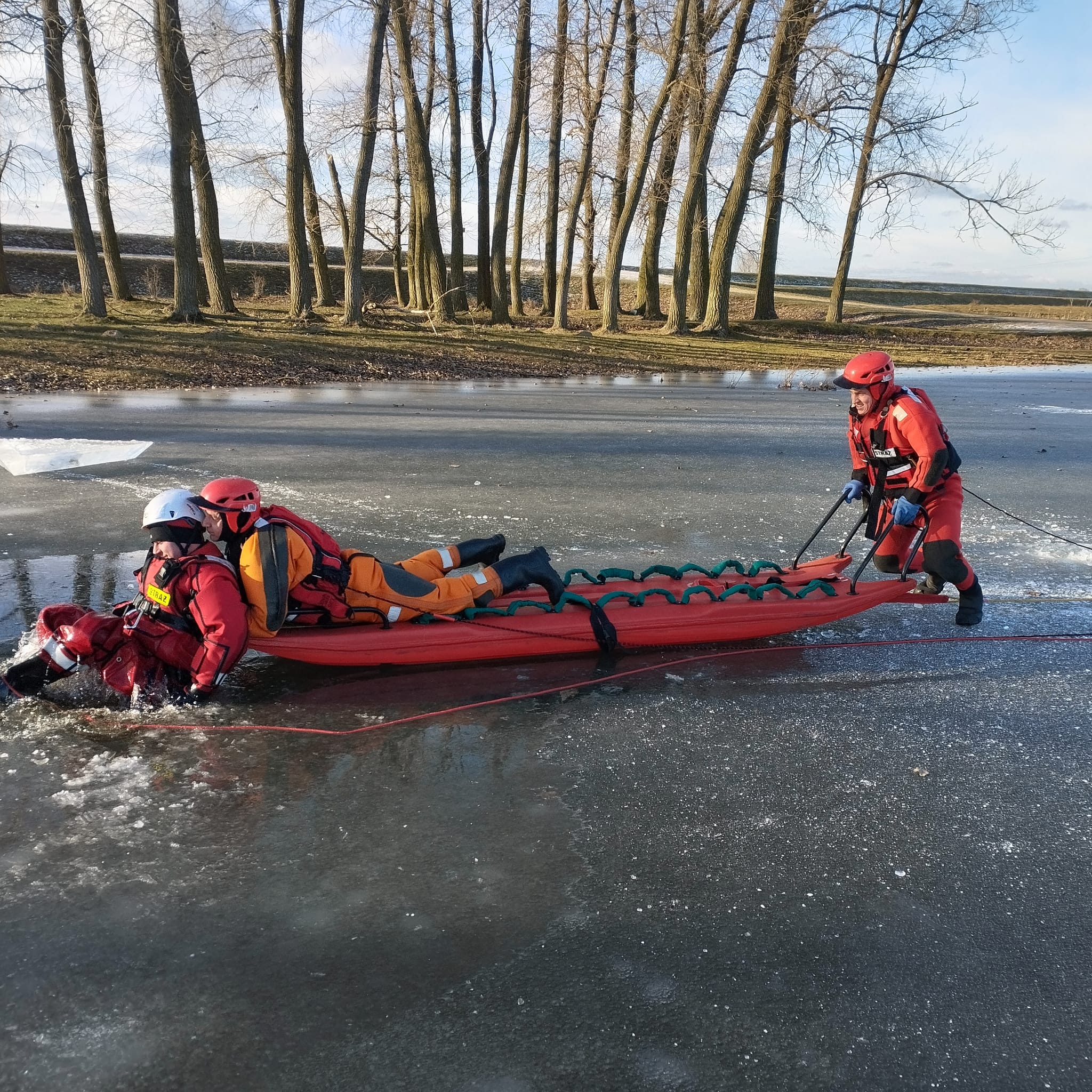 W dniach 17 - 23 stycznia 2024 r. strażacy z Jednostki Ratowniczo – Gaśniczej w Kole, w ramach doskonalenia zawodowego przeprowadzili ćwiczenia z zakresu ratownictwa na lodzie w miejscowości Ochle.