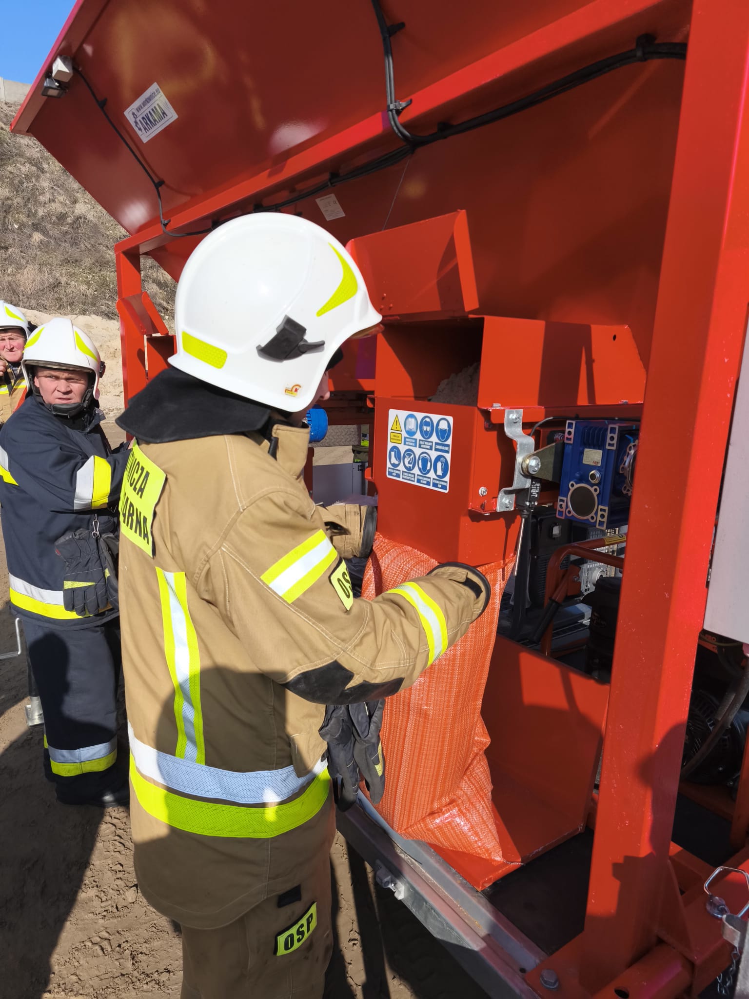 W dniach od 4 do 6 marca dzięki uprzejmości firmy MK Stella na terenie żwirowni w miejscowości Police Średnie KP PSP w Kole zorganizowała ćwiczenia z zakresu obsługi nowego urządzenia do napełniania worków piaskiem ARKAMA-WGII. W ćwiczeniach brało udział łącznie 85 strażaków z KP PSP Koło oraz jednostek OSP z terenu powiatu kolskiego. Celem ćwiczeń było zapoznaje strażaków z możliwościami nowego sprzętu oraz utrwalenie umiejętności organizacji działań w zakresie ratownictwa przeciwpowodziowego.
