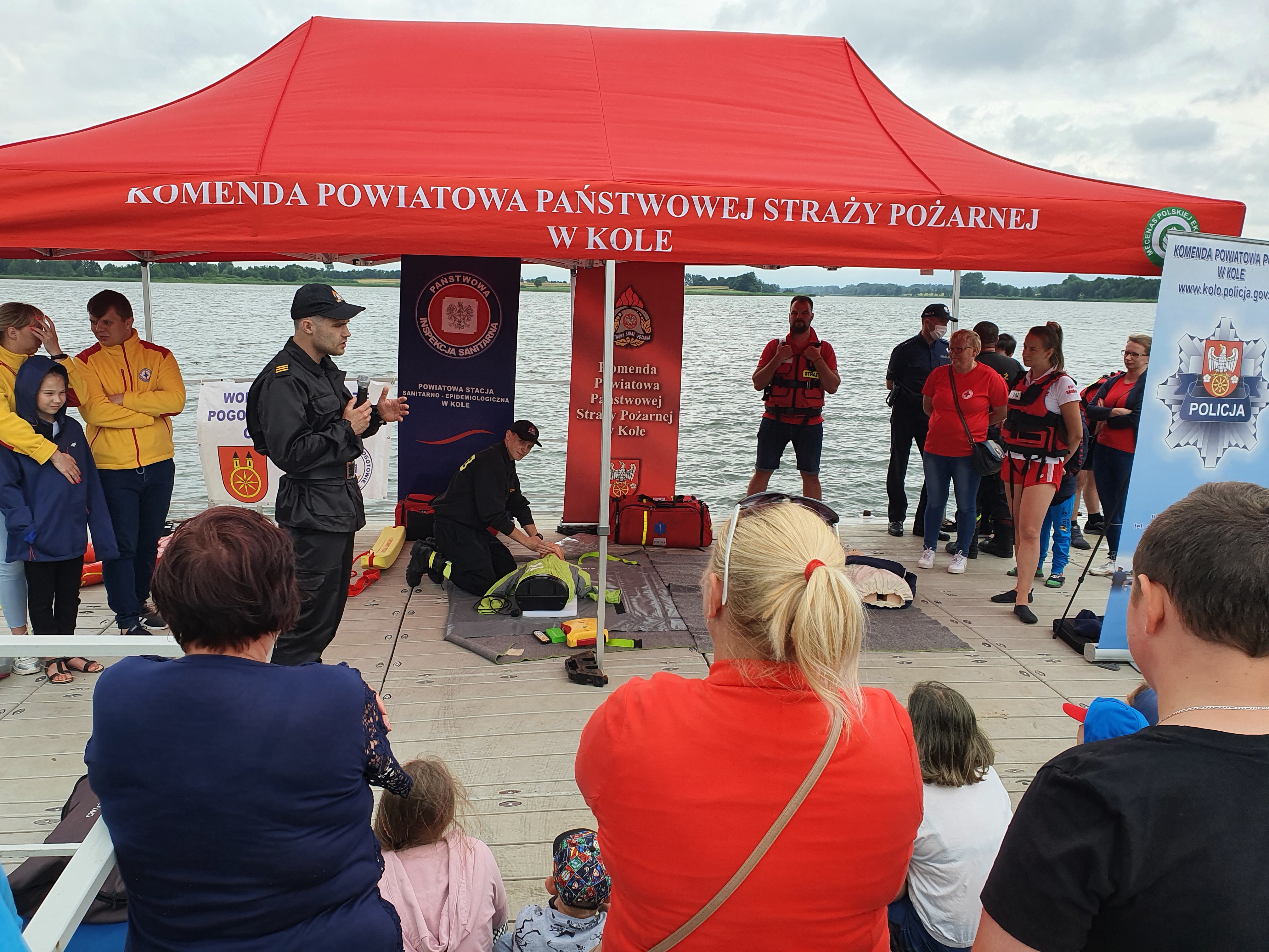 03 lipca 2021 r. w Centrum Sportów Wodnych w Brdowie odbyła się kolejna w tym roku akcja prewencyjna w ramach ogólnopolskiej kampanii „Kręci mnie bezpieczeństwo nad wodą” z udziałem kolskich strażaków. W akcji uczestniczyła także Komenda Powiatowa Policji w Kole, Państwowa Inspekcja Sanitarna oddział Koło, Polski Czerwony Krzyż oddział Koło, Wodne Ochotnicze Pogotowie Ratunkowe oddział Koło. Kolscy strażacy udzielali instruktażu pierwszej pomocy przedmedycznej oraz zaprezentowali pokaz prowadzenia resuscytacji krążeniowo-oddechowej u dorosłego z użyciem automatycznego defibrylatora zewnętrznego „AED”. Ponadto w związku z trwającymi wakacjami strażacy omawiali zagadnienia związane z bezpiecznym wypoczynkiem nad wodą oraz jak powinno wyglądać prawidłowe wezwanie pomocy w sytuacji zagrożenia.