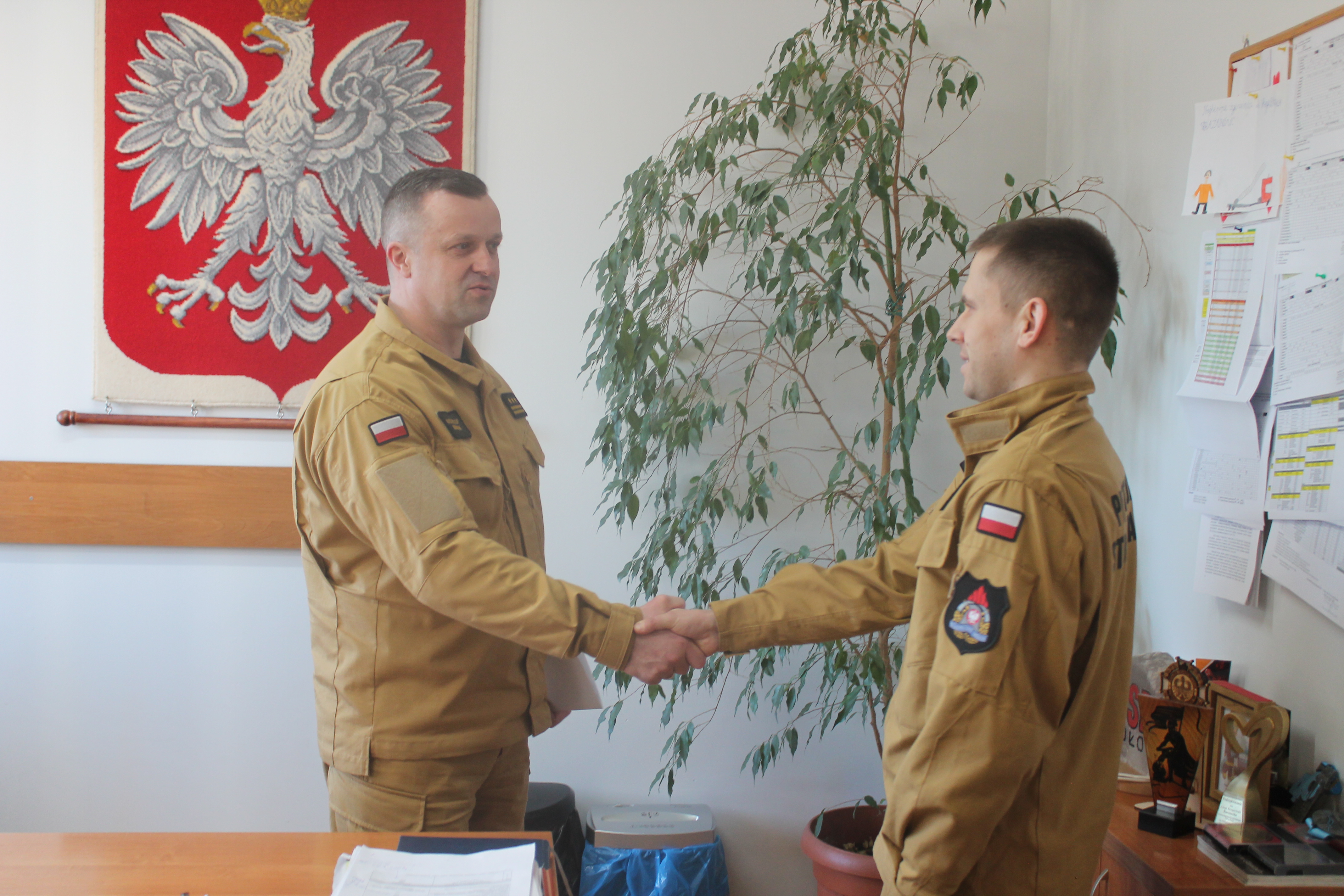 Z dniem 1 kwietnia 2023 roku Komendant Powiatowy PSP w Kole st. bryg. Krzysztof Żurawik w obecności Zastępcy Komendanta Powiatwego PSP w Kole mł. bryg. Arkadiusza Wypióra oraz Naczelnika Wydziału kwatermistrzowsko-kadrowego st. kpt. Joanny Wolnej mianował na stanowisko służbowe naczelnika wydziału operacyjno-kontrolno-rozpoznawczego mł. kpt. Kamila Jasińskiego. Komendant Powiatowy PSP w Kole złożył awansowanemu funkcjonariuszowi gratulacje, podziękował za wysiłek włożony w ukończenie studiów wyższych oraz życzył dalszych sukcesów w życiu zawodowym i rodzinnym.