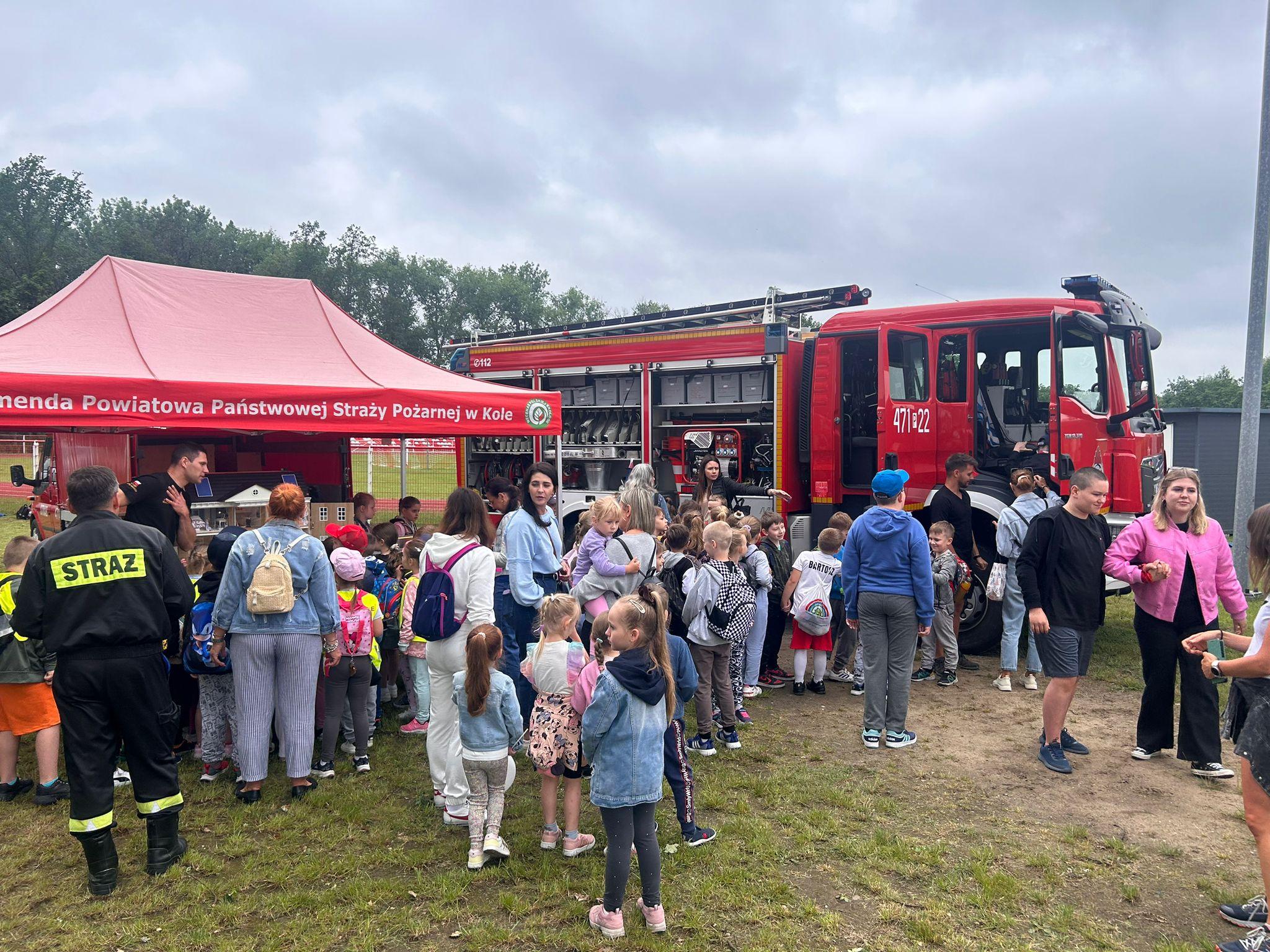 Strażacy dokonali prezentacji wozu bojowego oraz sprzętu ratowniczego wykorzystywanego podczas działań ratowniczych. Funkcjonariusze KP PSP w Kole zaprezentowali uczestnikom festynu symulator zagrożeń pożarowych w domu oraz poprzez dyskusję uświadomili dzieci o zagrożeniach pożarowych w lasach jak również o tych które mogą napotkać w nadchodzących wakacjach i okresie letnim.