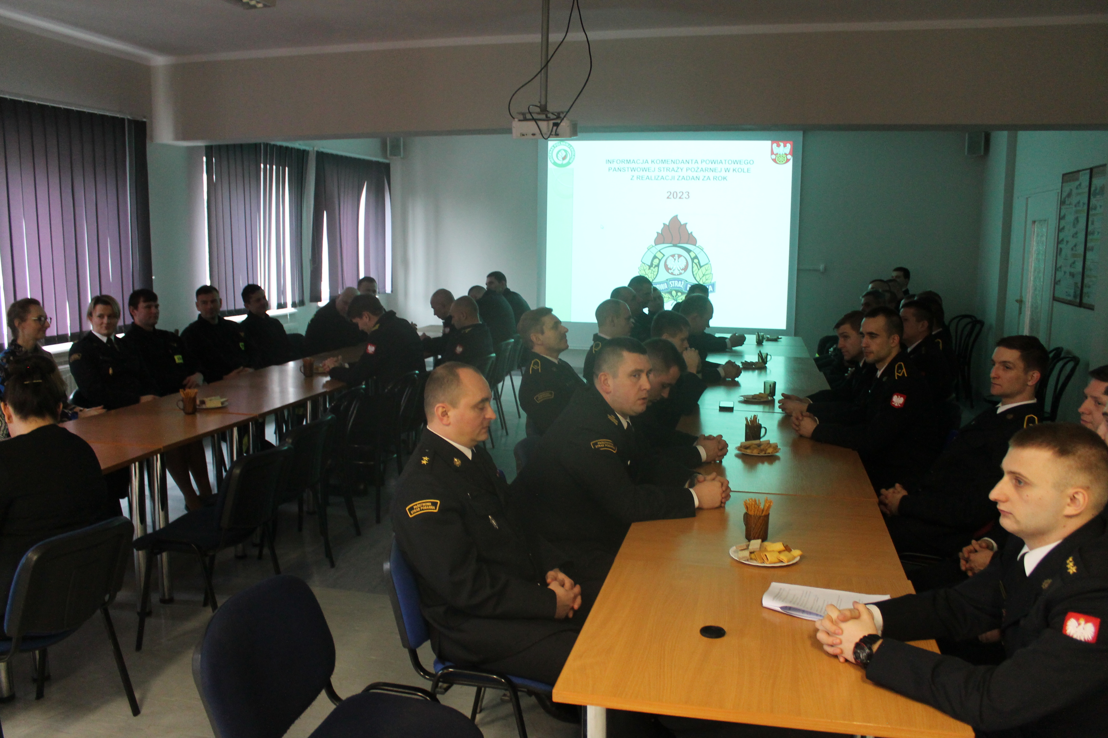 Dnia 09 lutego 2024 r. w świetlicy Komendy Powiatowej Państwowej Straży Pożarnej w Kole odbyła się narada podsumowująca działalność Komendy Powiatowej Państwowej Straży Pożarnej w Kole za rok 2023. W naradzie udział wzięli: