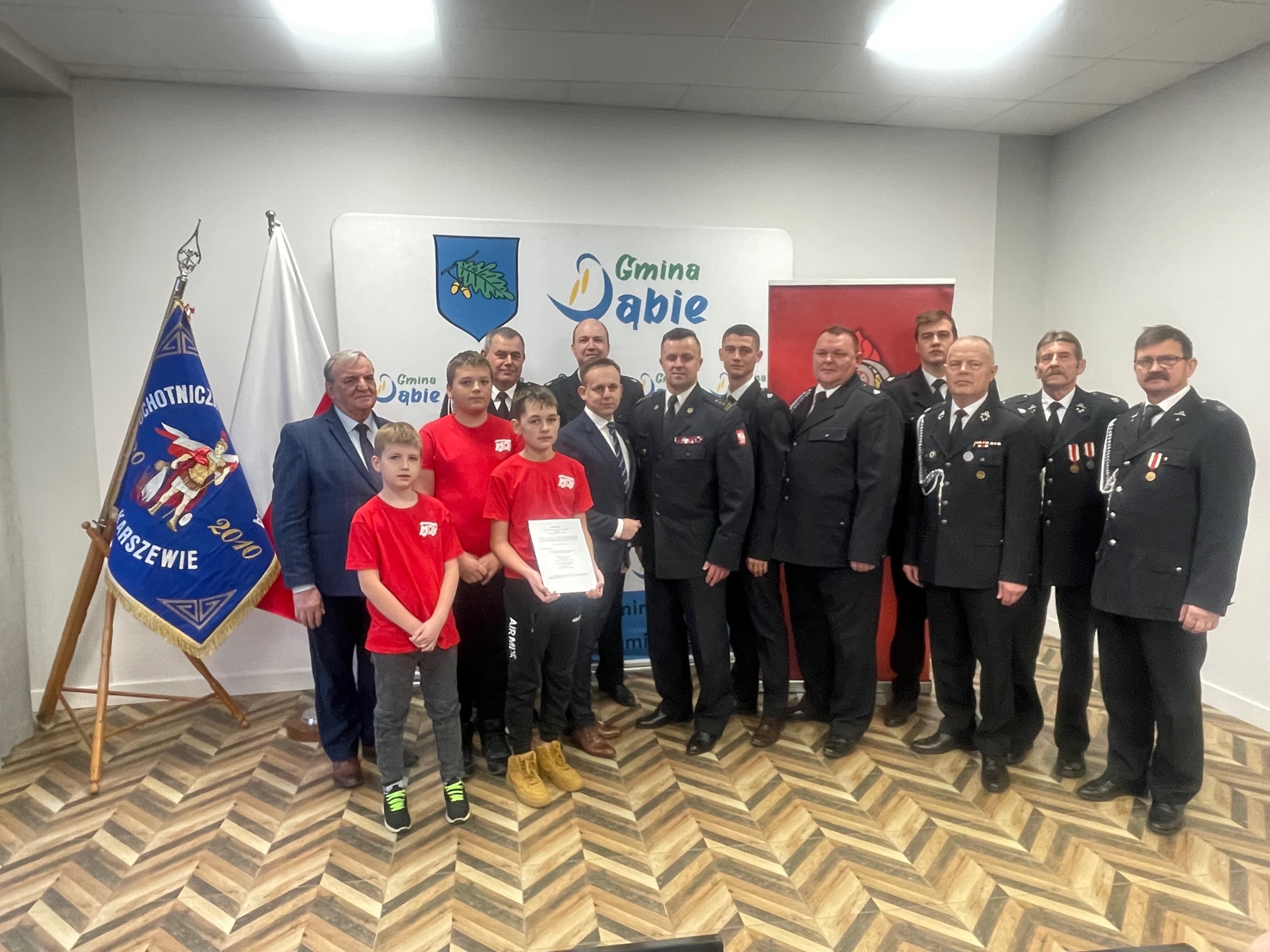 27 listopada 2023 r. w miejscowości Dąbie odbyło się spotkanie, w którym brali udział: komendant powiatowy Państwowej Straży Pożarnej w Kole st. bryg. Krzysztof Żurawik, burmistrz miasta i gminy Dąbie Pan Tomasz Ludwicki, komendant gminny Ochotniczej Straży Pożarnej dh Paweł Czerwiński oraz prezes Ochotniczej Straży Pożarnej w Karszewie dh Krzysztof Galant. Celem spotkania było podpisanie porozumienia umożliwiającego jednostce Ochotniczej Straży Pożarnej w Karszewie wejść w struktury Krajowego Systemu Ratowniczo – Gaśniczego.