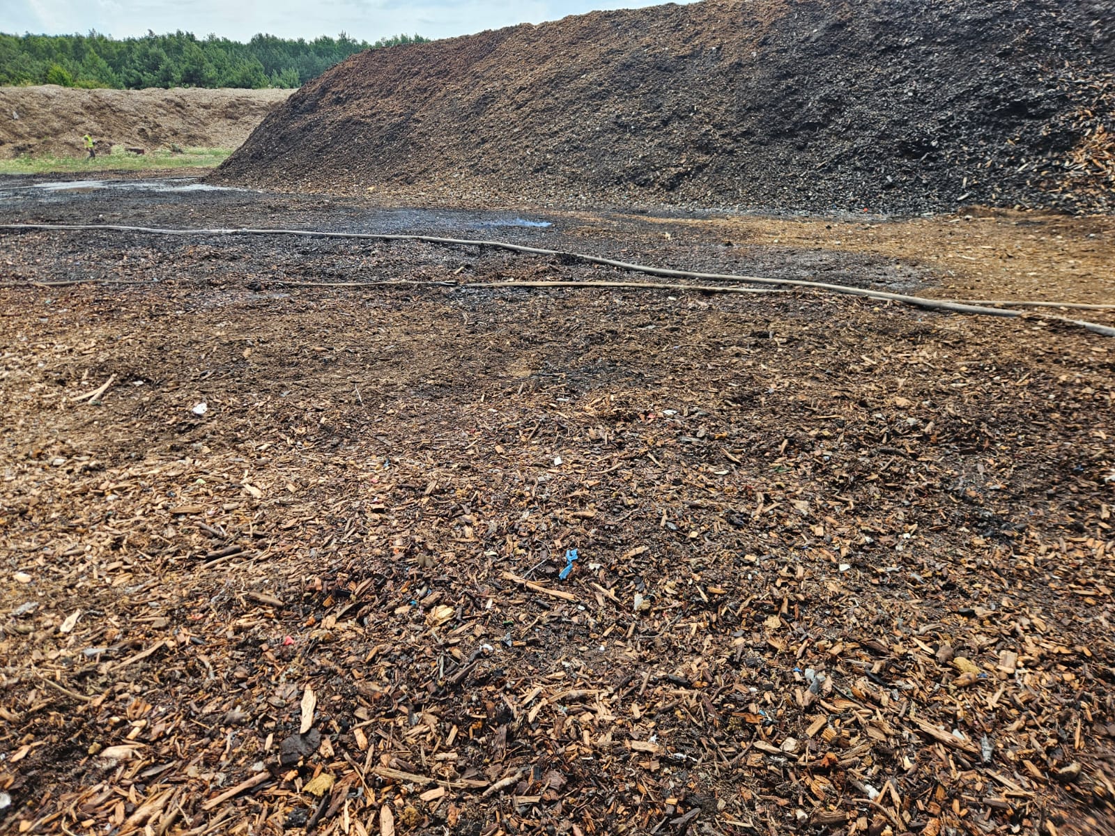 Po przybyciu pierwszego zastępu przeprowadzono rozpoznanie, które wykazało, że pożarem objęta jest pryzma odpadów o powierzchni około 15m x15m.