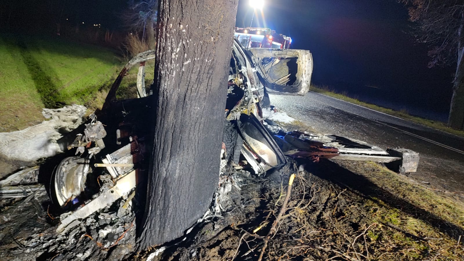 Po dojeździe zastępów straży pożarnej ustalono, że doszło do zderzenia dwóch samochodów osobowych. Pojazdami podróżowali tylko kierowcy. Jeden z pojazdów był całkowicie objęty pożarem.