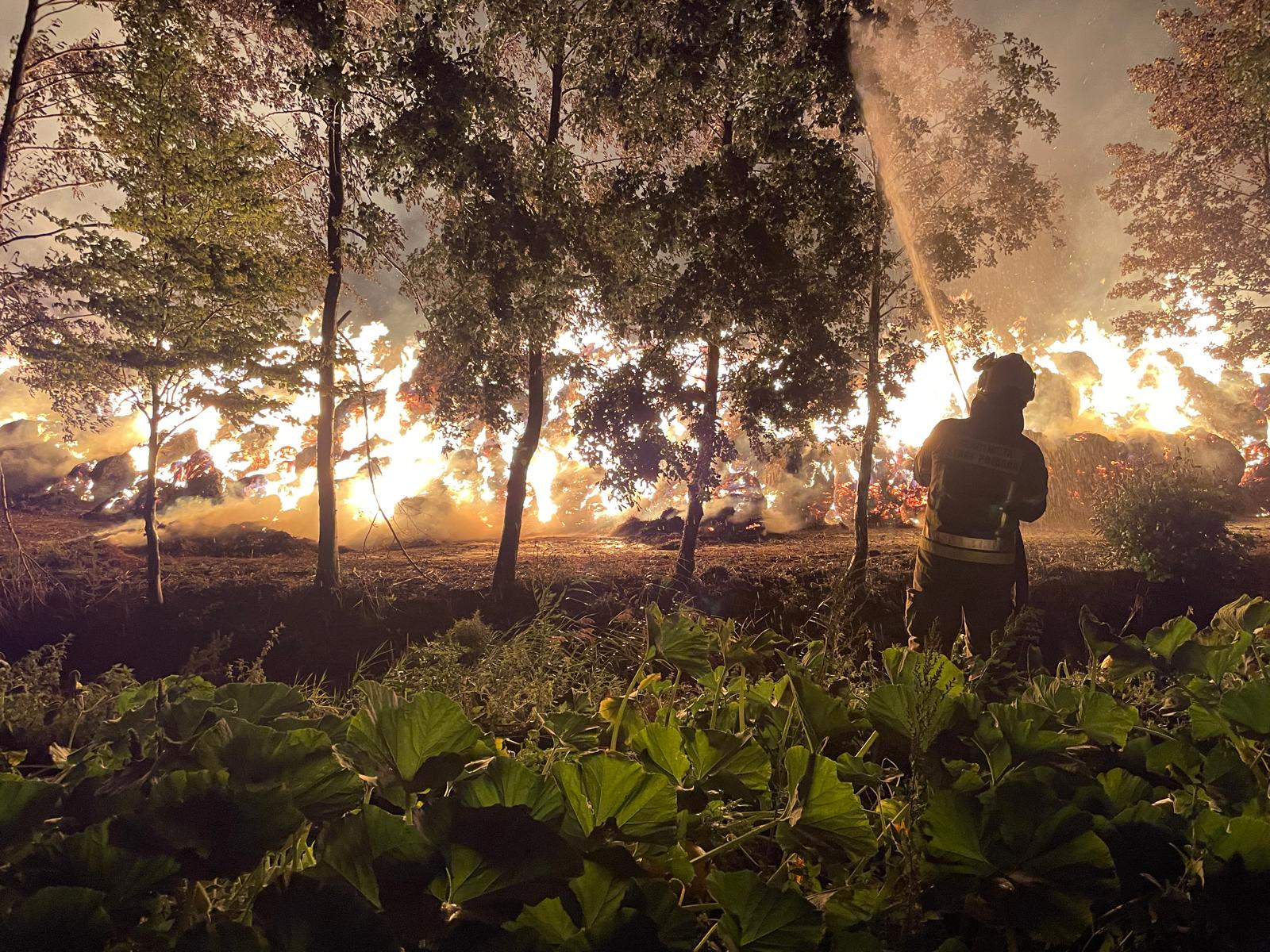 Po przybyciu zastępów straży pożarnej na miejsce zdarzenia ustalono, że pożarem objęte jest około 1000 balotów słomy w czterech stertach ustawionych obok siebie oraz 80 belek kiszonki.
