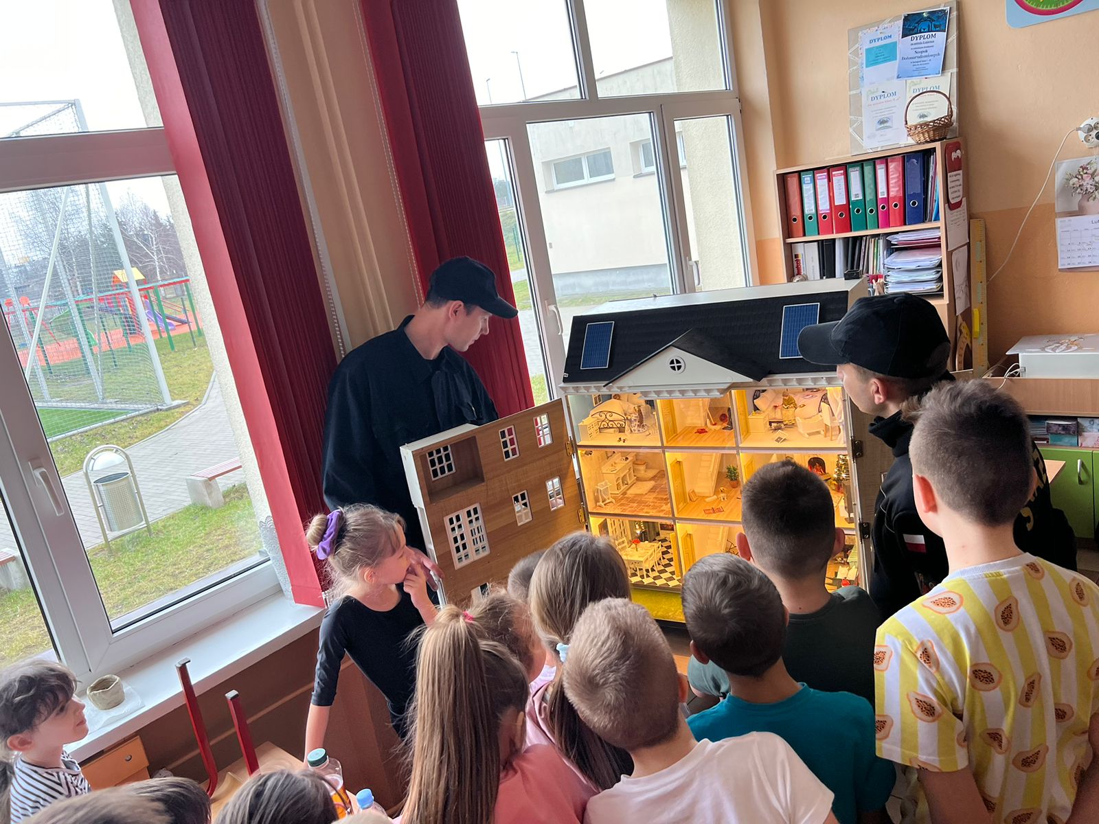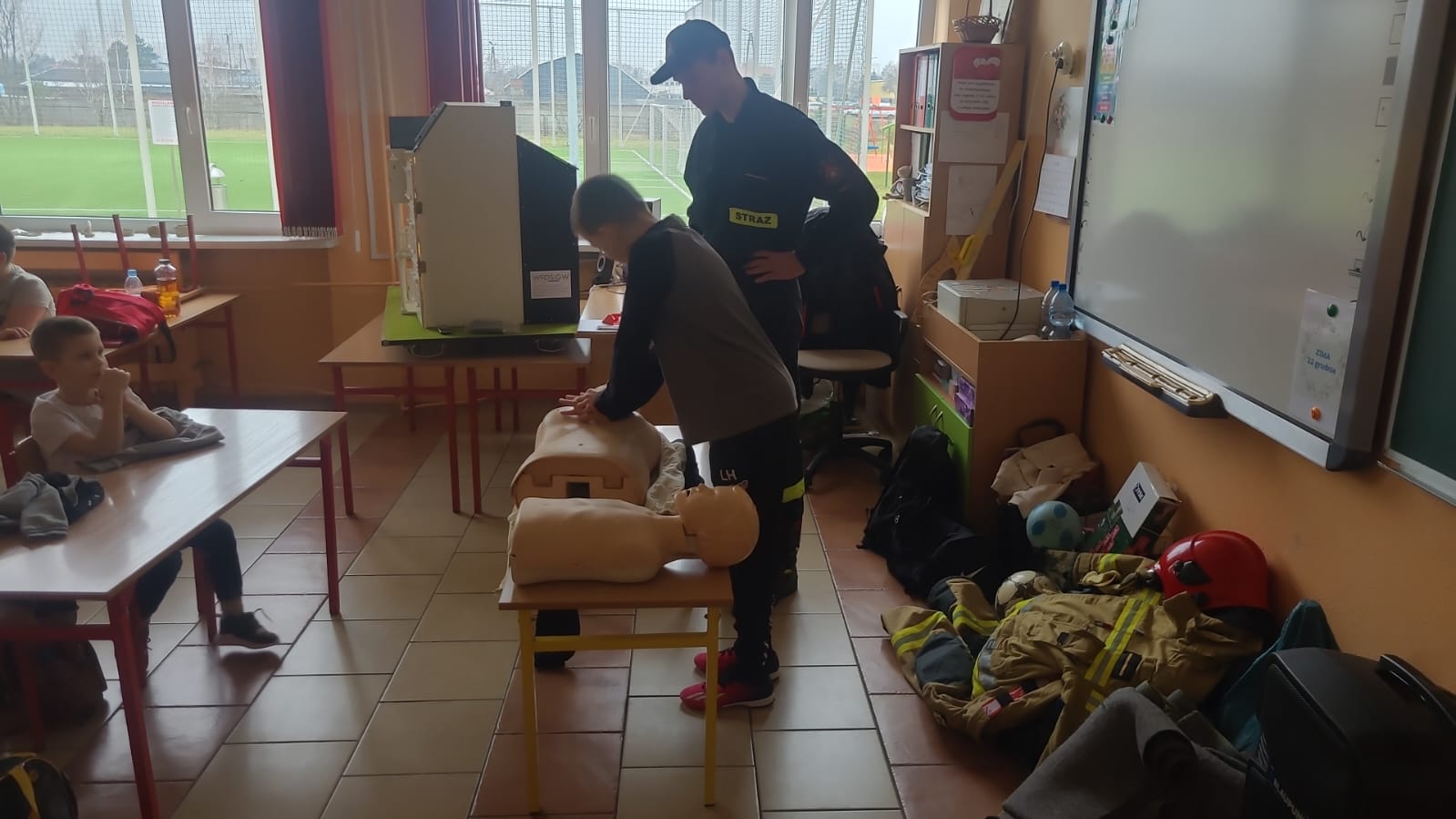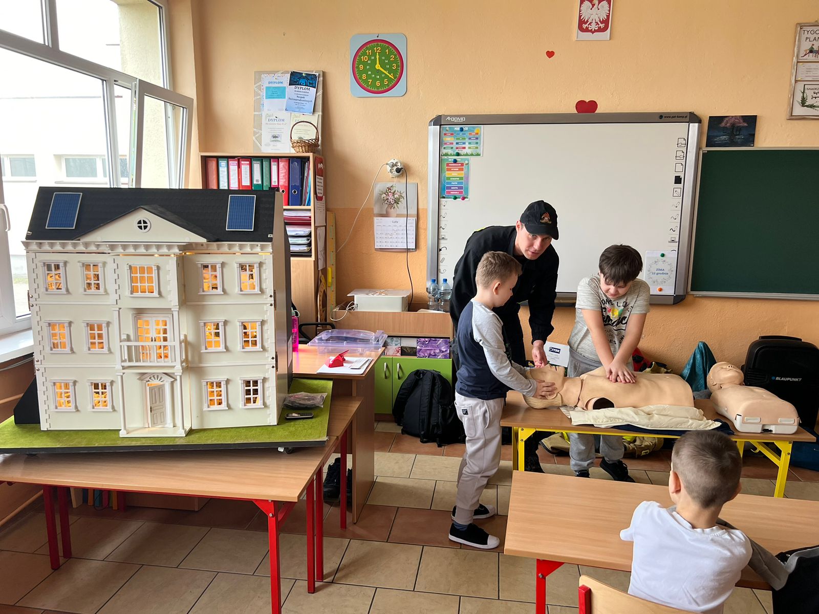 Funkcjonariusze Komendy Powiatowej Państwowej Straży Pożarnej w Kole w dniu 15.02.2024 r. przeprowadzili prewencje społeczną w Szkole Podstawowej nr 5 w Kole podczas organizowanych tam półkolonii dla dzieci. Strażacy przeprowadzili pokaz działania interaktywnego symulatora edukacyjnego, przy pomocy, którego zaprezentowali zagrożenia pożarowe i inne niebezpieczne zdarzenia, jakie mogą mieć miejsce w domu jednorodzinnym. Przedstawiono zasady udzielania kwalifikowanej pierwszej pomocy oraz zasady postępowania w przypadku zdarzeń nagłych. Zaprezentowano także umundurowanie i środki ochrony indywidualnej strażaka. Strażacy przypomnieli również dzieciom numery telefonów alarmowych oraz zasady zgłaszania zdarzeń pod numer alarmowy.