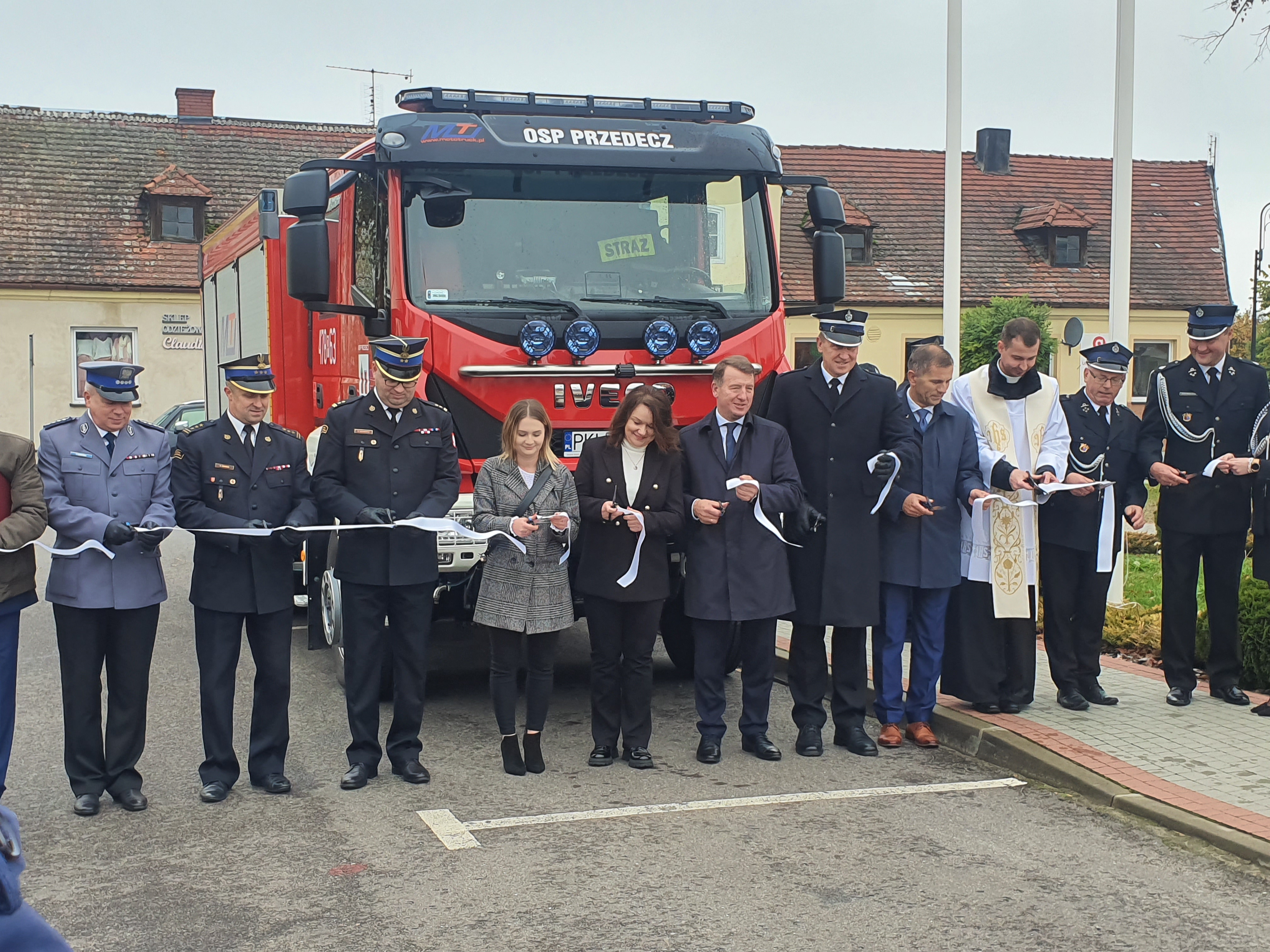 Dnia 23.10.2022 r. na placu przed Jednostką Ochotniczej Straży Pożarnej w Przedczu odbyła się uroczysta zbiórka z okazji przekazania samochodu ratowniczo-gaśniczego marki IVECO EURO CARGO jednostce OSP Przedecz. Wśród zaproszonych gości byli: