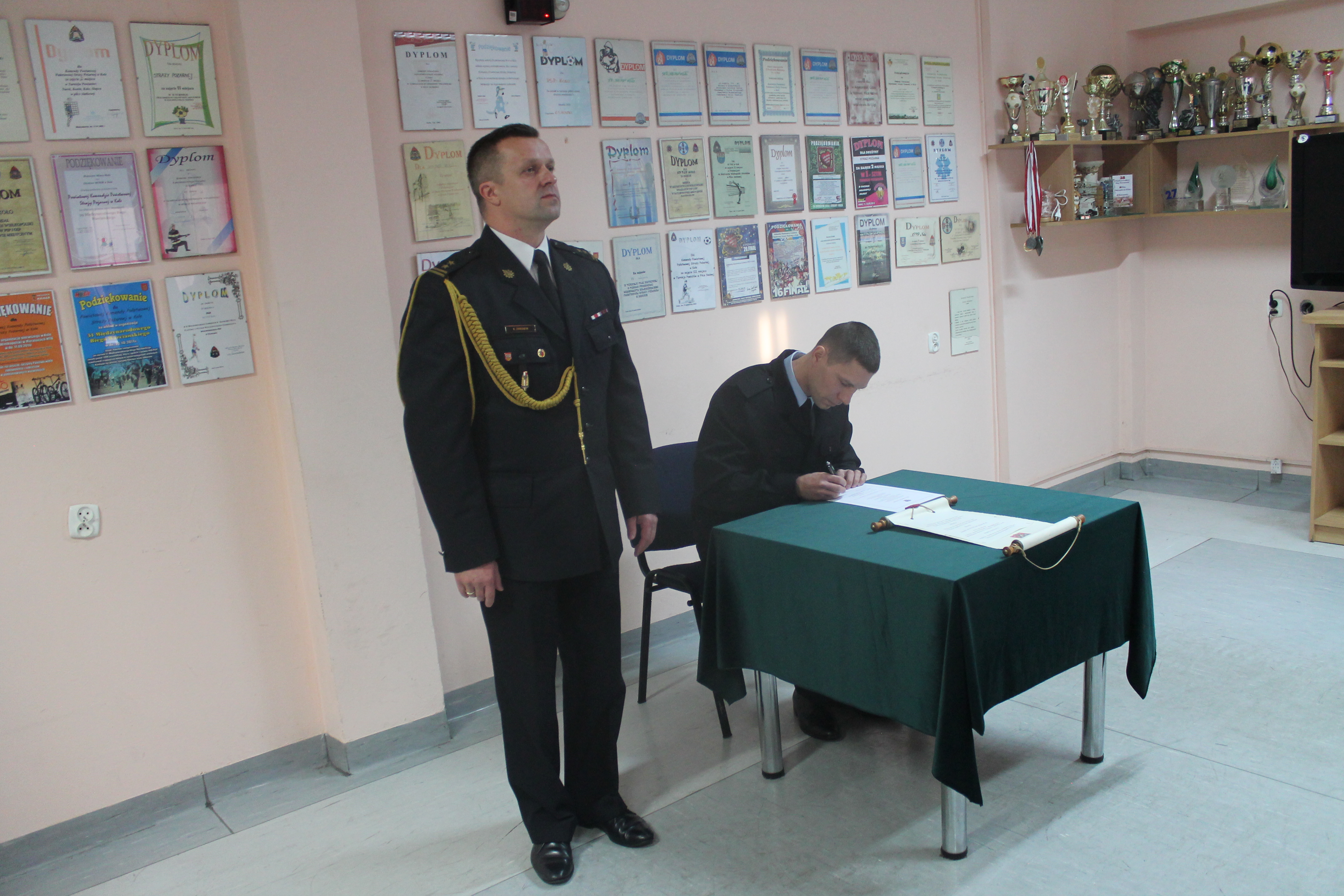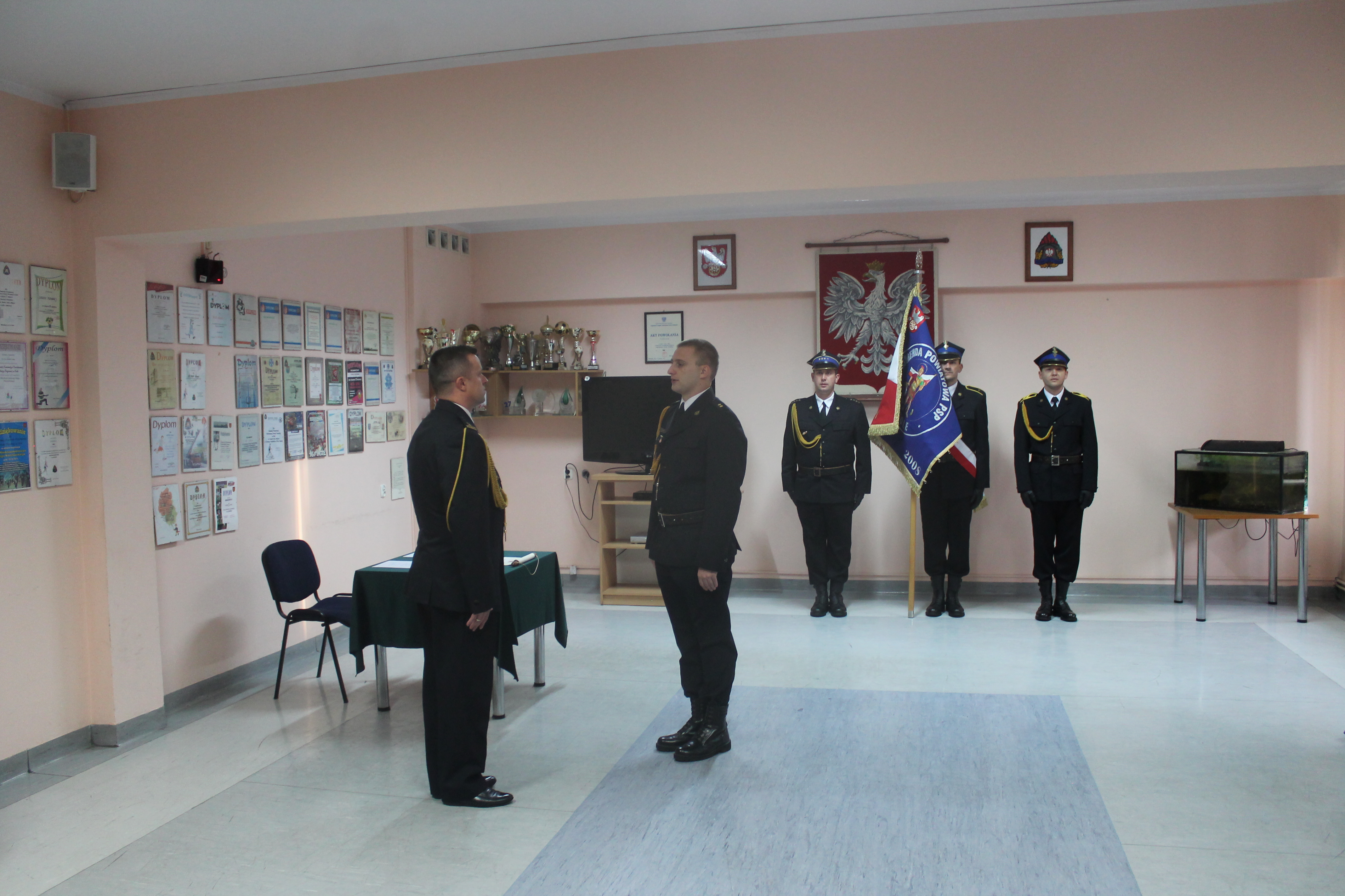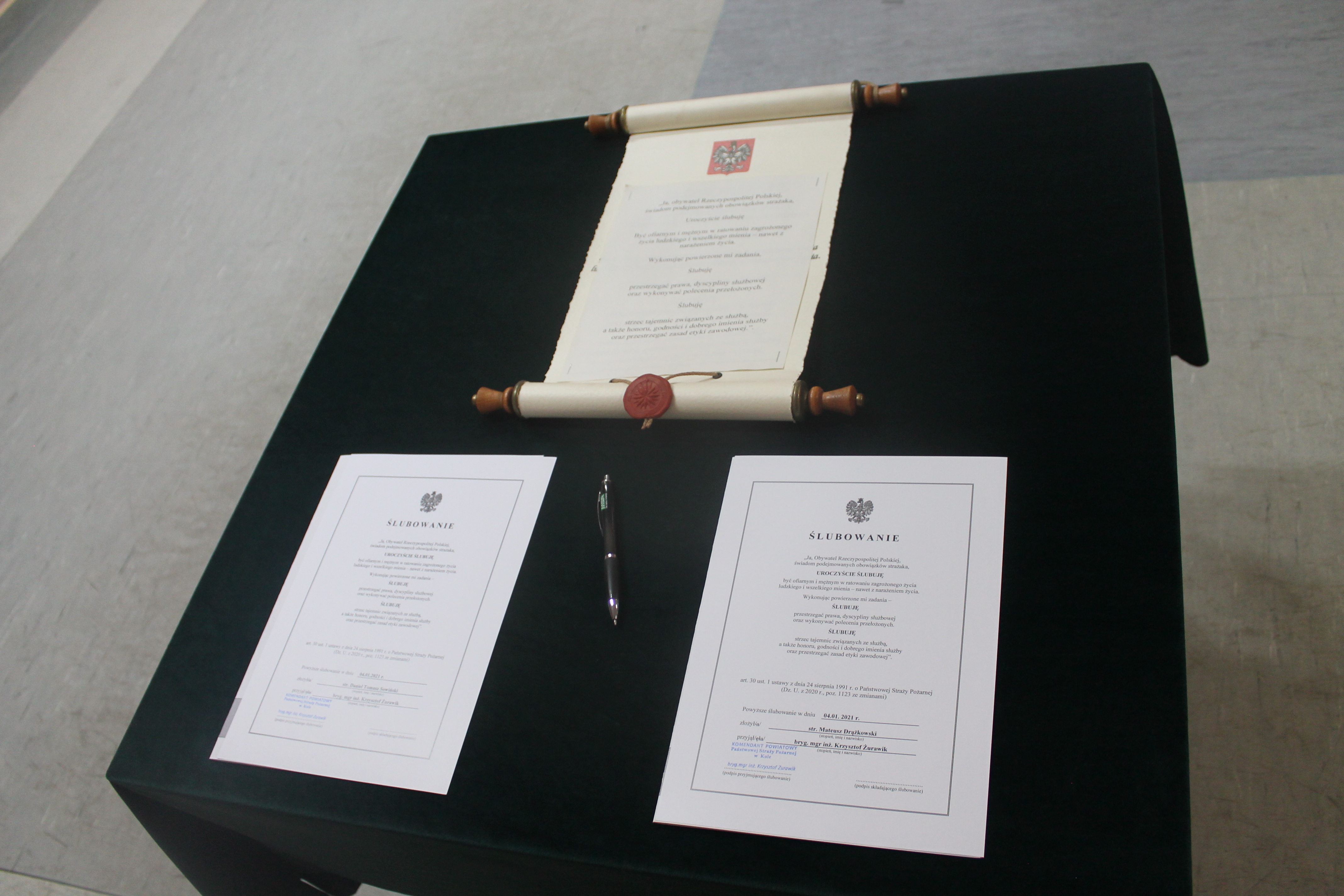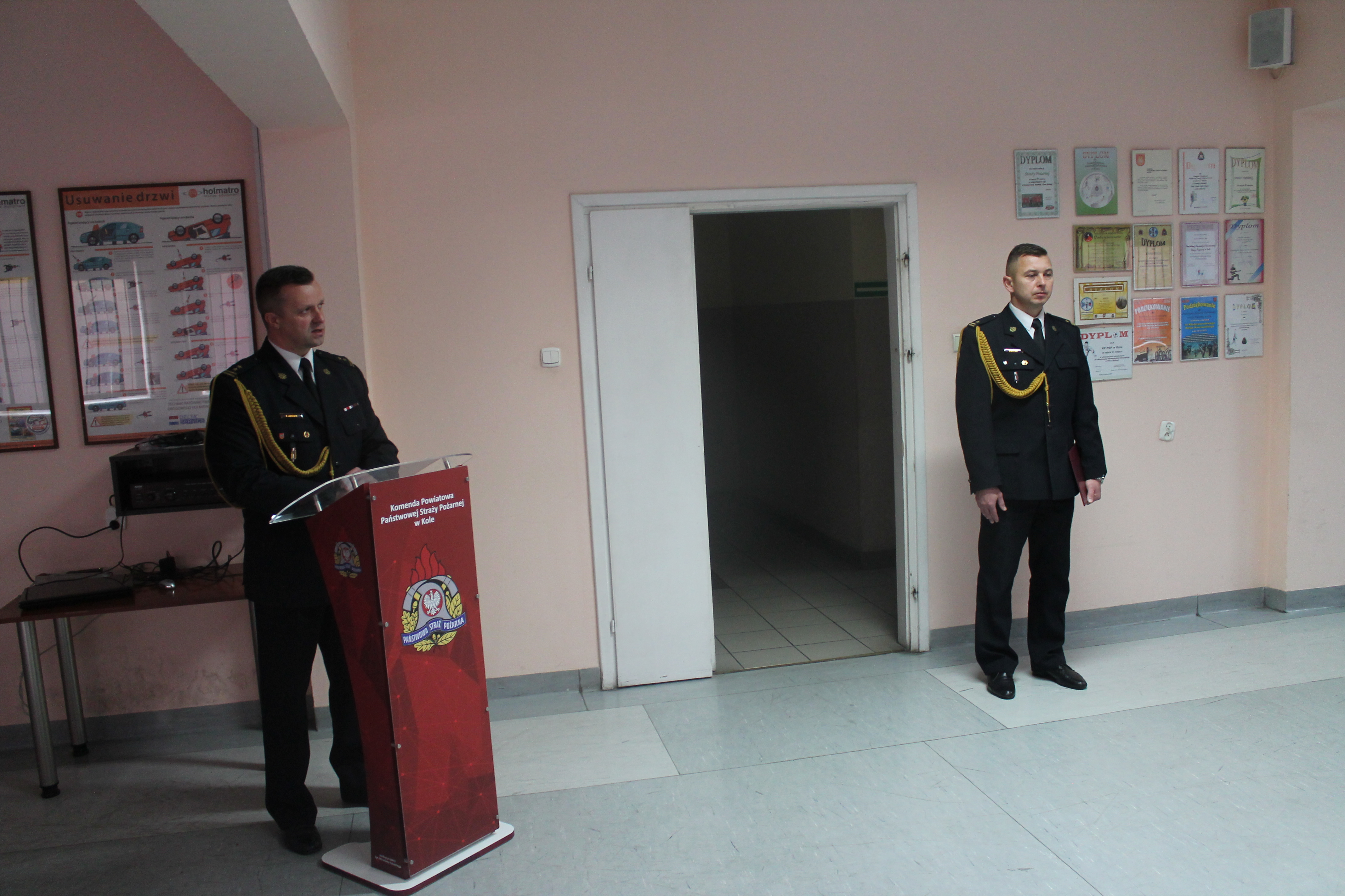 W/w funkcjonariusze wypowiedzieli słowa roty ślubowania i podpisali akty ślubowania. Komendant Powiatowy Państwowej Straży Pożarnej w Kole w swoim wystąpieniu zaznaczył, iż jest to bardzo uroczysty moment w życiu zawodowym, postrzegany jako coś podniosłego oraz stanowi symbol pełnego włączenia do cieszącej się społecznym uznaniem służby i wzmacnia świadomość własnej tożsamości zawodowej.