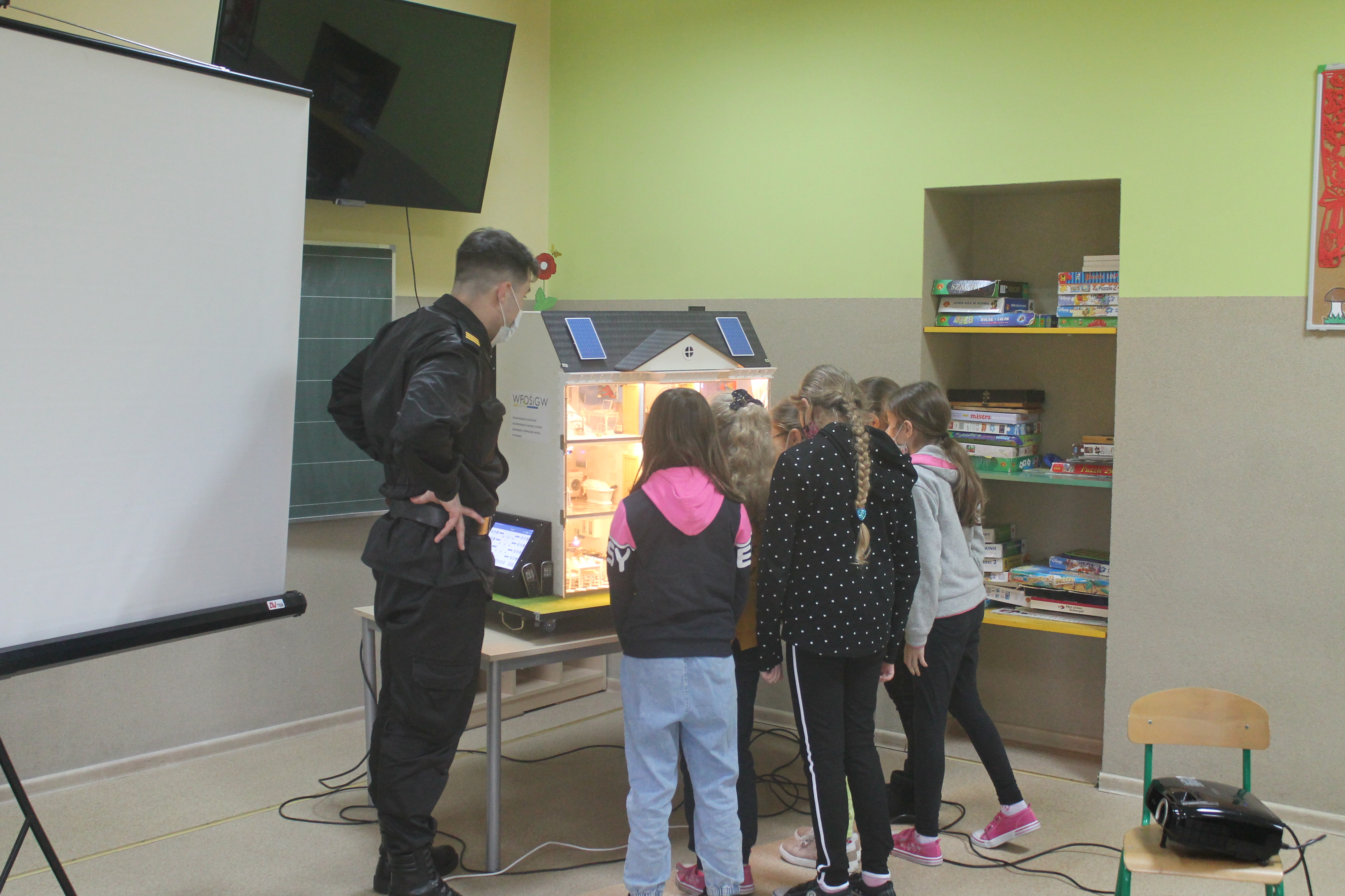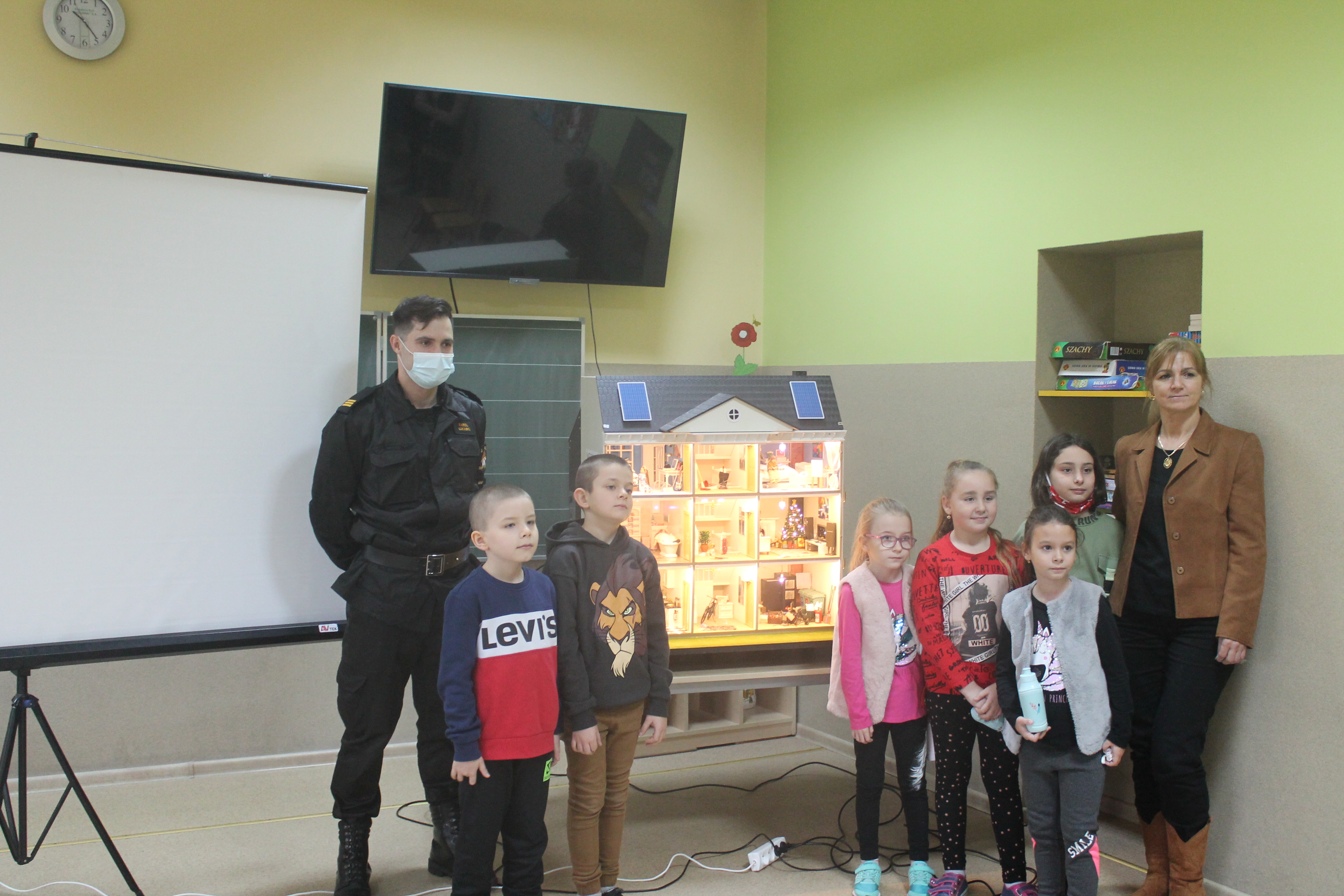 Dnia 16 listopada 2021 roku strażacy z Komendy Powiatowej Państwowej Straży Pożarnej w Kole odwiedzili uczniów Szkoły Podstawowej w Borysławicach Kościelnych. Podczas spędzonych chwil ze strażakami, dzieci z wielkim zainteresowaniem wysłuchały informacji na temat specyfiki strażackiej służby, akcji ratowniczych oraz najczęstszych przyczyn powstawania pożarów. Do tego celu strażacy wykorzystali mobilny symulator zagrożeń pożarowych domu jednorodzinnego, który jak zawsze spełnił swoją rolę i dzięki zastosowanym efektom specjalnym wywołał wielkie emocje i niemałe poruszenie na sali lekcyjnej. Dzięki urządzeniu strażacy w ciekawy i przystępny sposób mogą przestrzec dzieci przed zagrożeniami pożarowymi mogącymi wystąpić w naszych domach, wskazać jak postępować w przypadku ich wystąpienia, a co najważniejsze, jak im skutecznie zapobiegać.