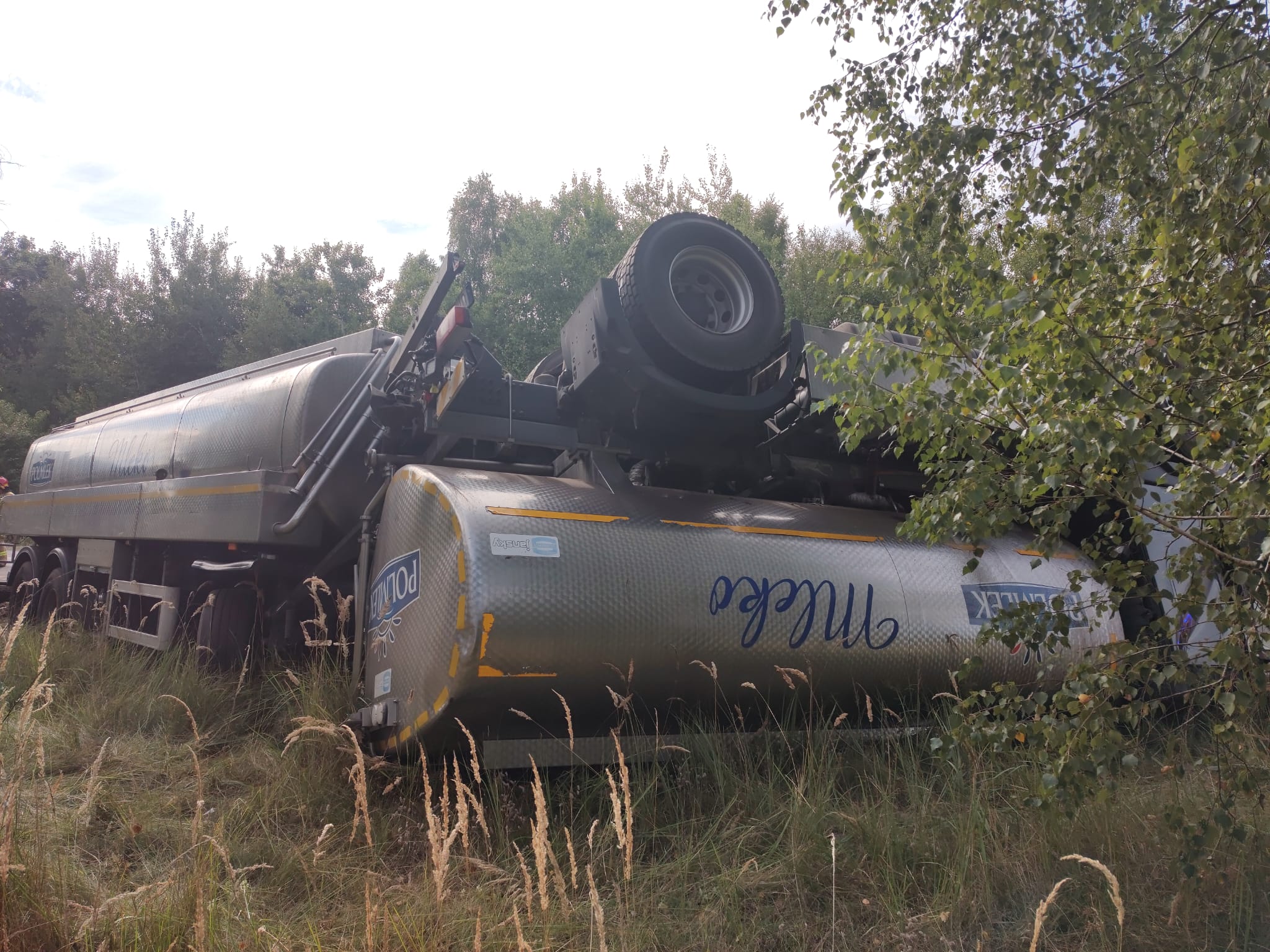 WYPADEK AUTOCYSTERNY PRZEWOŻĄCEJ MLEKO W MIEJSCOWOŚCI LIPINY
