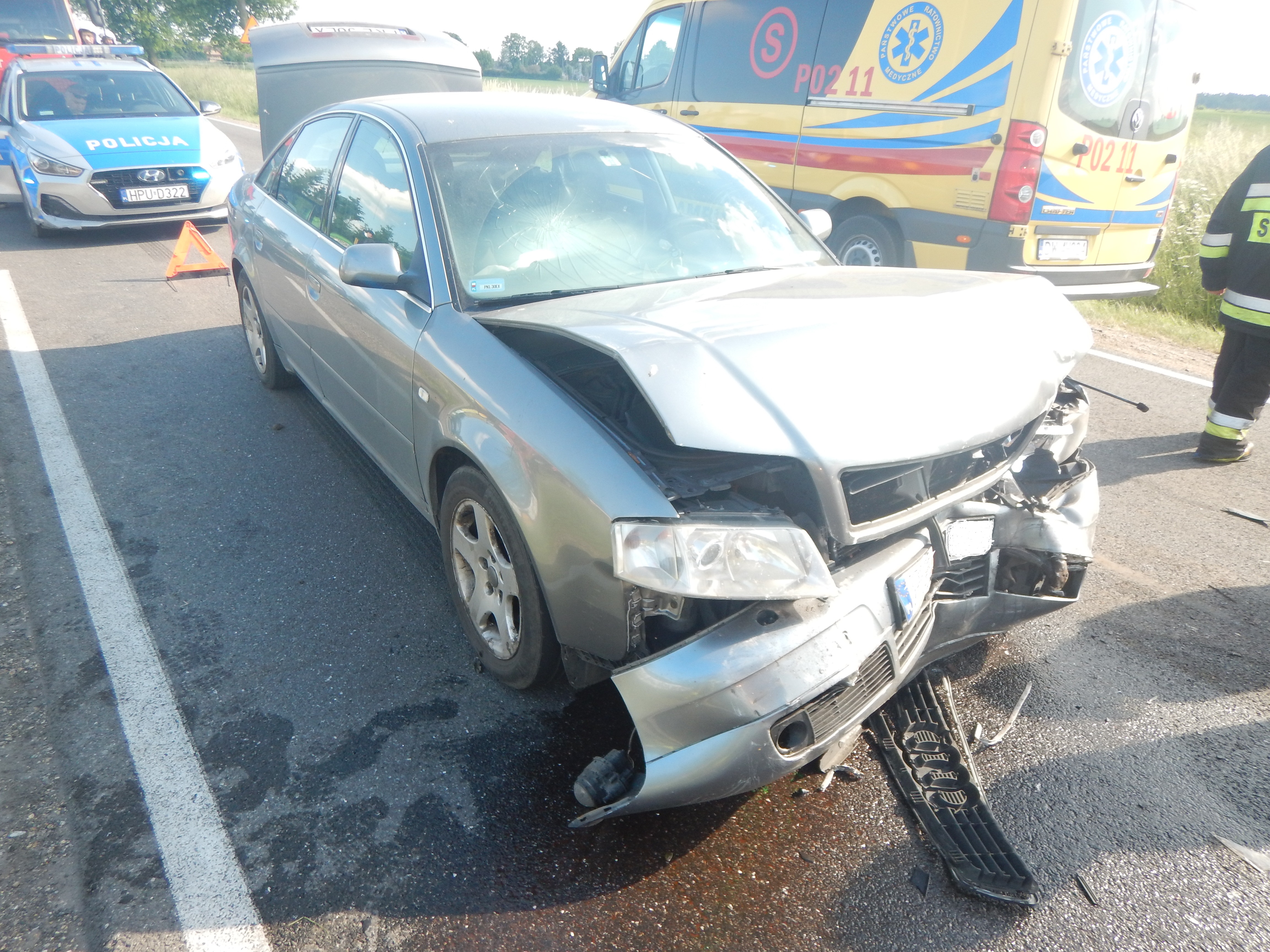 Dnia 10 czerwca o godz. 16:47 do Stanowiska Kierowania Komendanta Powiatowego PSP w Kole wpłynęło zgłoszenie o wypadku drogowym na drodze wojewódzkiej nr 473 w Chełmnie gm. Dąbie. Po dojeździe zastępów na miejsce zdarzenia Kierujący Działaniem Ratowniczym przeprowadził rozpoznanie, w wyniku którego ustalił, że w zdarzeniu brały udział dwa samochody osobowe: Audi A6 oraz Fiat Seicento. Pojazdami podróżowały łącznie trzy osoby, które opuściły je przed przybyciem zastępów JOP. Działania strażaków polegały na zabezpieczeniu miejsca zdarzenia oraz odłączeniu dopływu prądu z akumulatorów w pojazdach. Wraz z zastępami JOP na miejsce zdarzenia przybył Zespół Ratownictwa Medycznego, który zaopatrzył kierującego Fiatem Seicento i przetransportował go do Szpitala w Kole. Kierujący Audi A6 oraz pasażer odmówili udzielenia pomocy przez Zespół Ratownictwa Medycznego. W działaniach brały udział zastępy OSP z Dąbia, Karszewa, Chełmna oraz JRG Koło. Łączny czas trwania akcji to 1 godzina i 9 minut.
