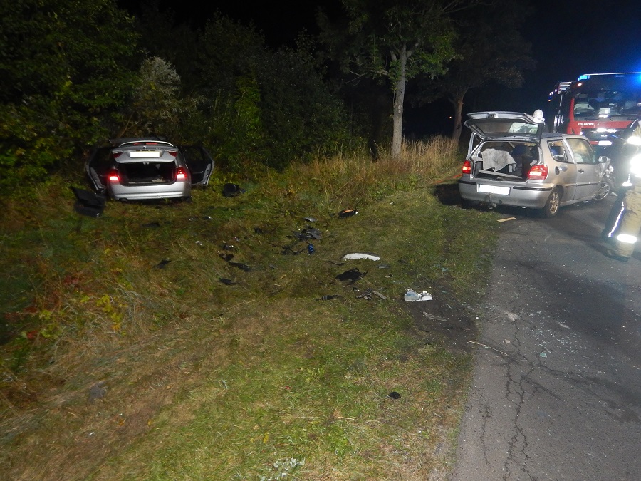W dniu 19 października 2020r. o godzinie 22.06 Stanowisko Kierowania Komendanta Powiatowego Państwowej Straży Pożarnej w Kole przyjęło zgłoszenie o wypadku drogowym w miejscowości Ruszków Pierwszy gm. Kościelec. Na drodze powiatowej doszło do zderzenia dwóch samochodów osobowych – BMW 3 i Volkswagen Polo. Dyżurny do działań zadysponował strażaków z Jednostki Ratowniczo-Gaśniczej w Kole oraz Ochotniczej Straży Pożarnej z Ruszkowa. Po przybyciu na miejsce zdarzenia ustalono, że doszło do zderzenia dwóch samochodów osobowych. Kierujący pojazdami opuścili je przed przybyciem zastępów Straży Pożarnej. Działania strażaków polegały na zabezpieczeniu miejsca zdarzenia, odłączeniu prądu z akumulatorów w pojazdach, zakręceniu zaworu bezpieczeństwa na butli z gazem LPG w pojeździe Volkswagen Polo oraz udzieleniu kwalifikowanej pierwszej pomocy kierującym pojazdami. Osoby poszkodowane przekazane zostały przybyłemu na miejsce zdarzenia zespołowi ratownictwa medycznego. Działania ratownicze przez 2 godziny 3 minuty prowadziło 13 strażaków. Dochodzenie w sprawie przyczyny wypadku prowadzi policja.