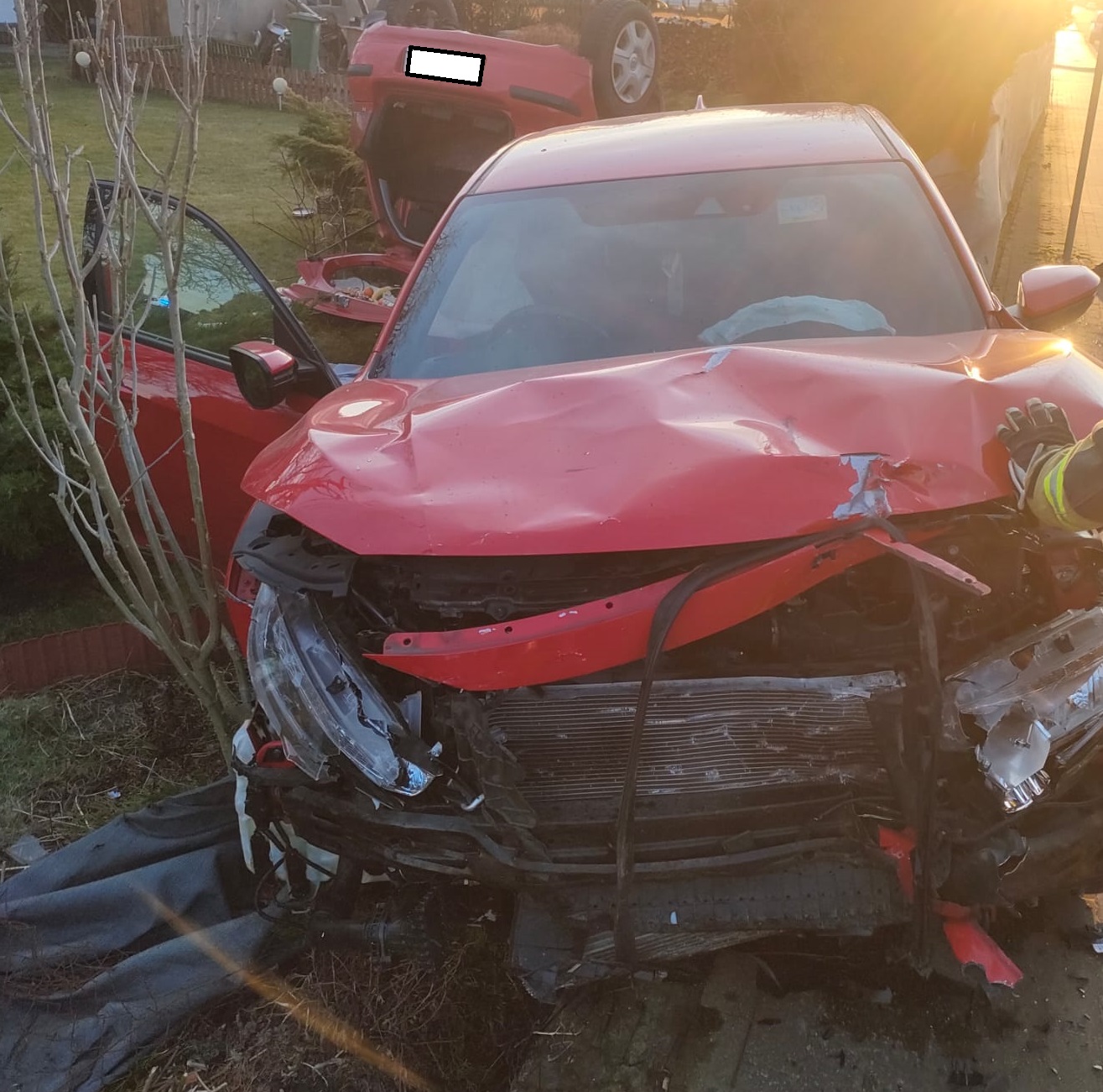 4 marca 2025r. o godzinie 16:39 Stanowisko Kierowania Komendanta Powiatowego Państwowej Straży Pożarnej w Kole przyjęło zgłoszenie o wypadku drogowym w miejscowości Dąbie na skrzyżowaniu ulic Kardynała Stefana Wyszyńskiego i Ogrodowej. Dyżurny do działań zadysponował strażaków z Jednostki Ratowniczo-Gaśniczej w Kole oraz jednostki OSP Dąbie i Karszew. W wyniku rozpoznania ustalono, że doszło do zderzenia dwóch samochodów osobowych a pojazdy znajdują się na prywatnej posesji. Pojazdami podróżowali tylko kierowcy, gdzie kierowca jednego pojazdu opuścił pojazd przed przybyciem służb ratowniczych, natomiast drugi kierujący został uwięziony w pojeździe. Działania straży pożarnej polegały na zabezpieczeniu miejsca zdarzenia, odłączeniu dopływu prądu z akumulatorów w uszkodzonych pojazdach oraz ewakuowaniu osoby poszkodowanej z pojazdu i udzieleniu kwalifikowanej pierwszej pomocy dwóm poszkodowanym osobom. Na miejsce zdarzenia przybyły dwa zespoły ZRM którym przekazano osoby poszkodowane. Dochodzenie w sprawie przyczyny wypadku prowadzi policja.