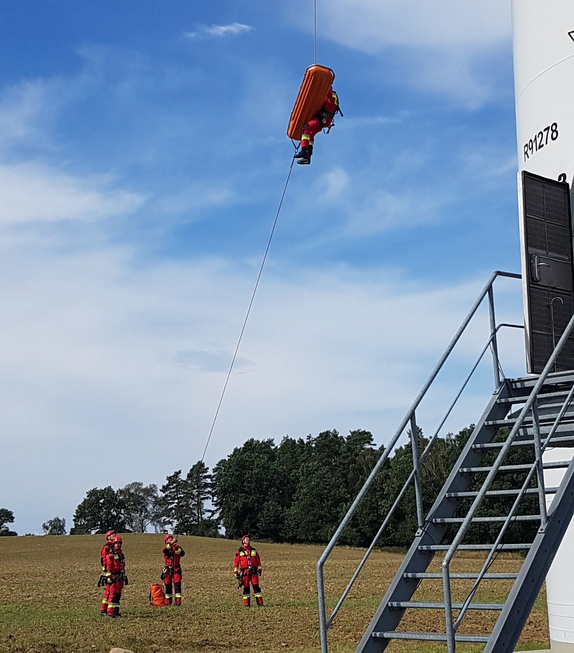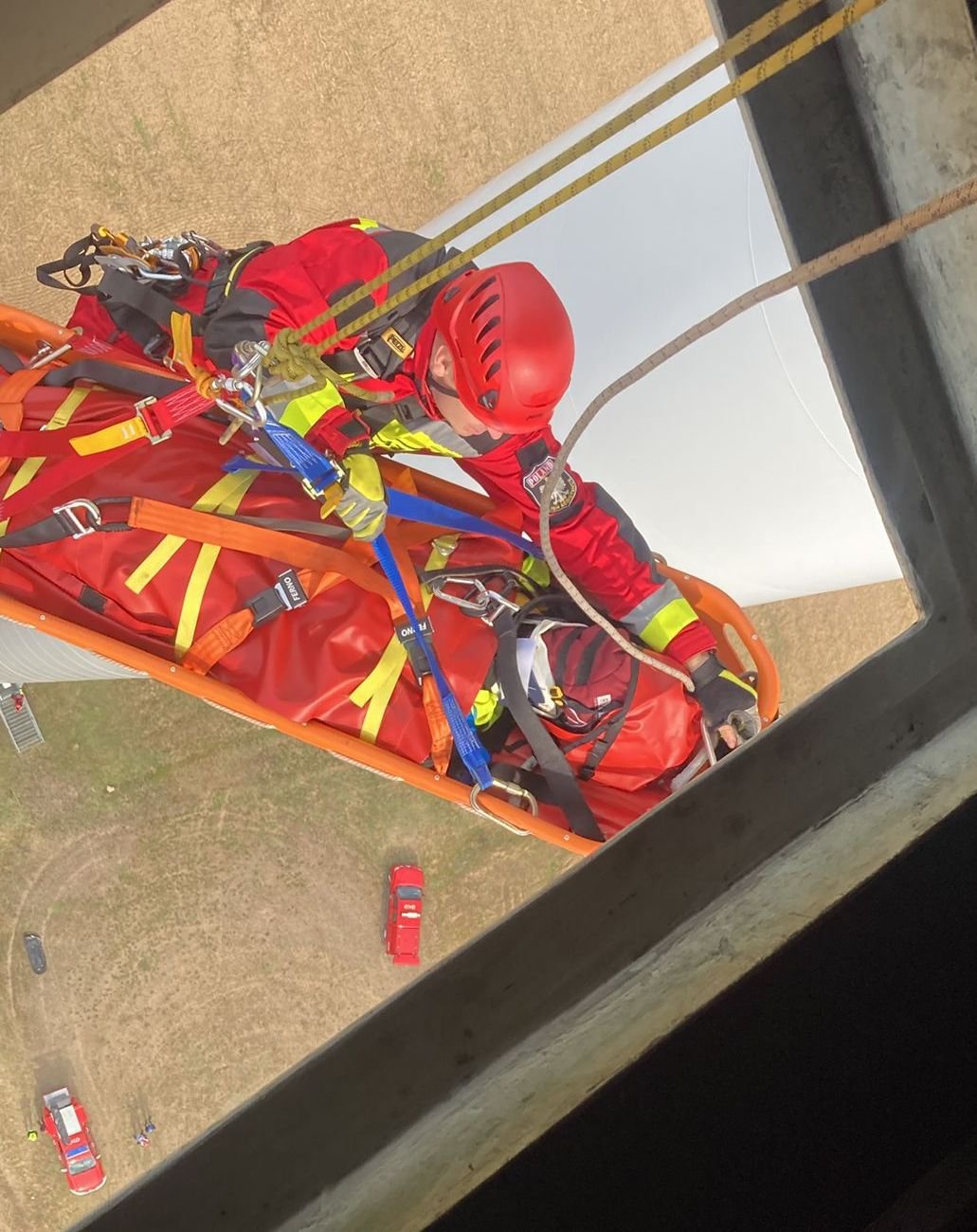 Dnia 07 wrze ś nia 2022 r. na terenie farmy wiatrowej Jarogniew-Mo ł towo, Specjalistyczna Grupa Ratownictwa Wysokościowego w Ko ł obrzegu przeprowadziłać wiczenia doskonal ą ce ratowników.