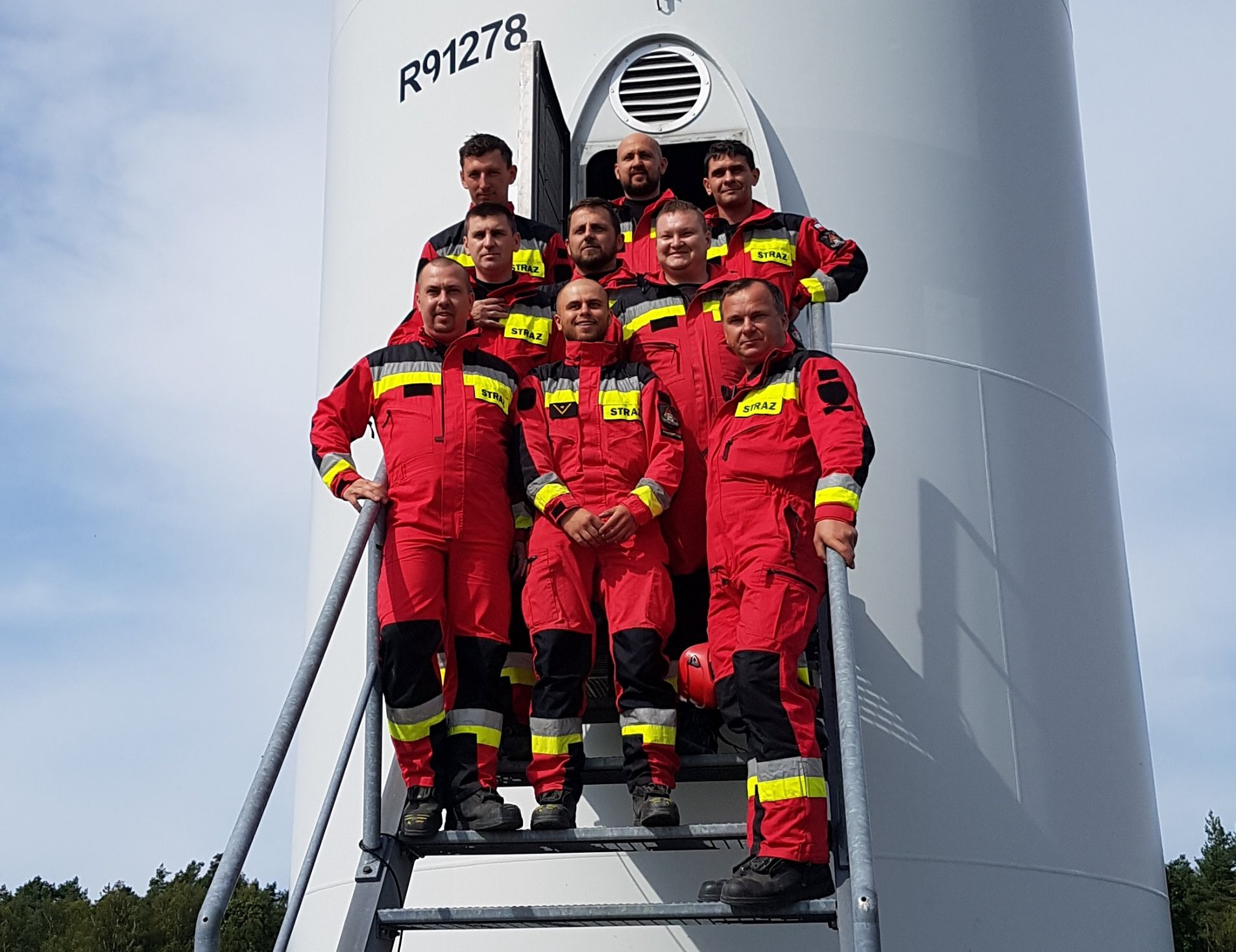Ćwiczenia przeprowadzono dzięki uprzejmości firmy Engie Zielona Energia Sp. z o. o., która udostępniła turbinęwiatrówą. Uczestnikami warsztatów była równieżfirma HAWK CentrumSzkoły Specjalistycznychi Prac Wysokoś ciowychoraz Mostostal Zabrze.