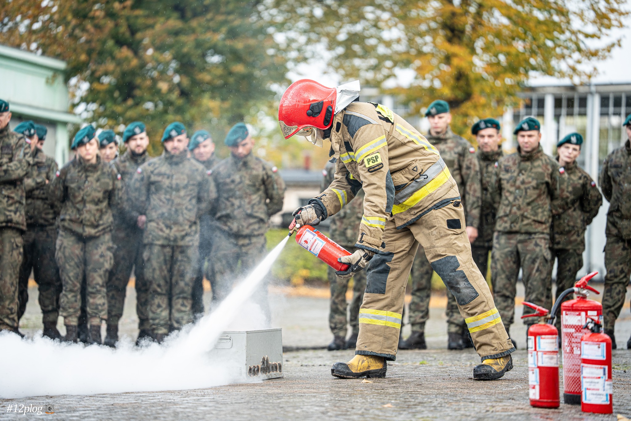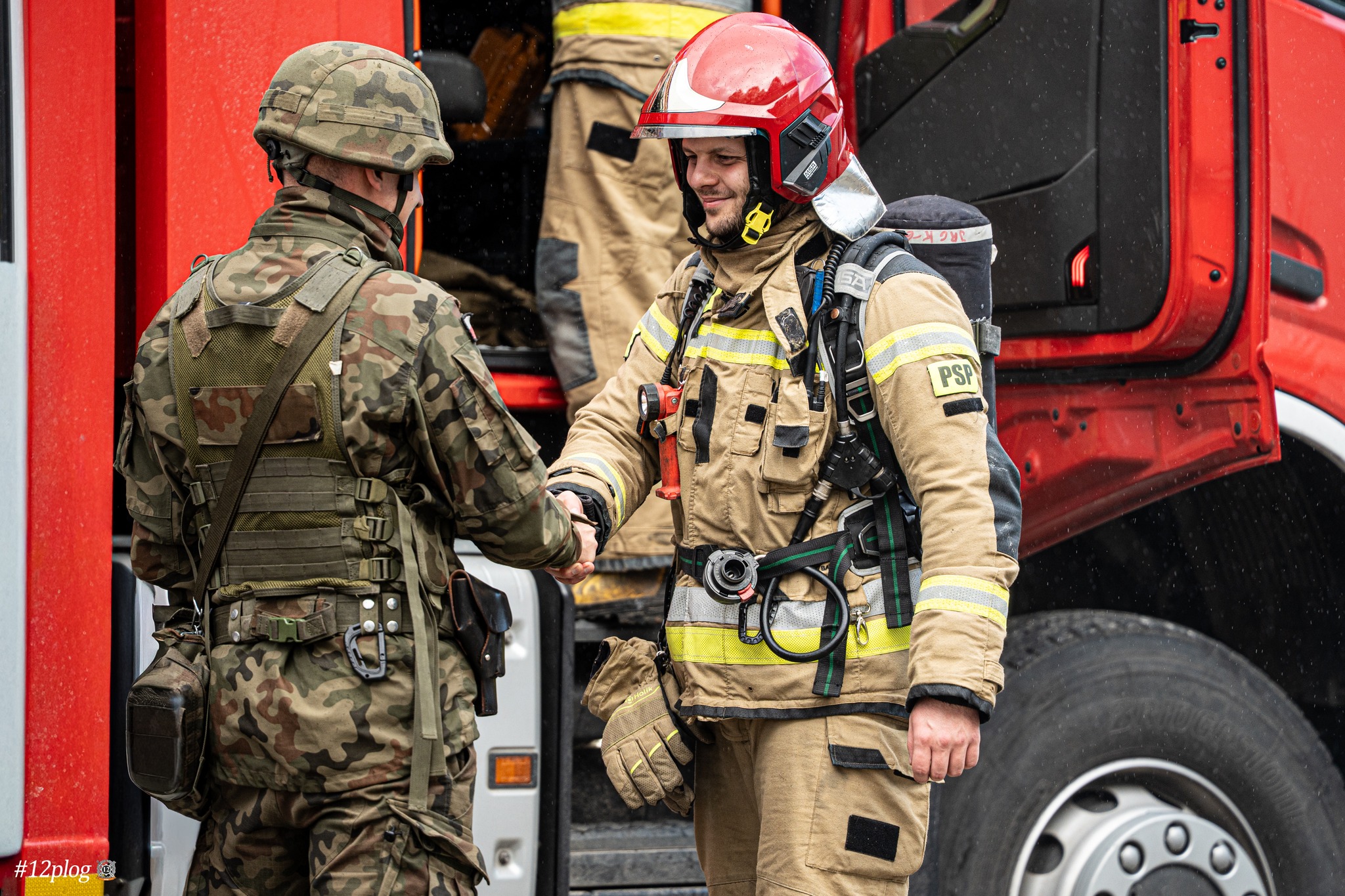 W dniu 17 października 2025 r. strażacy z Komendy Powiatowej PSP w Kołobrzegu uczestniczyli w ćwiczeniach taktyczno-bojowych na terenie 12. Kołobrzeskiego Pułku Logistycznego.