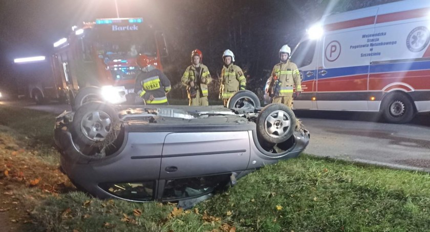Natychmiast na miejsce zdarzenia zadysponowane zostały 4 zastępy straży pożarnej z JRG Kołobrzeg oraz OSP Gościno. Po przybyciu na miejsce zdarzenia okazało się, że na prostym odcinku drogi kobieta kierująca samochodem marki Opel Corsa straciła panowanie nad pojazdem, który zjechał na pobocze drogi a następnie dachował. Wewnątrz pojazdu w momencie zdarzenia znajdowały się dwie osoby – kierująca pojazdem kobieta oraz 5-miesięczne dziecko. Do czasu przybycia Zespołu Ratownictwa Medycznego uczestnicy zdarzenia pozostawali pod opieką strażaków. Na szczęście po wstępnym zaopatrzeniu i rozpoznaniu okazało się, że ani matka ani jej dziecko nie wymagają pomocy medycznej. Okoliczności wypadku ustala kołobrzeska policja.