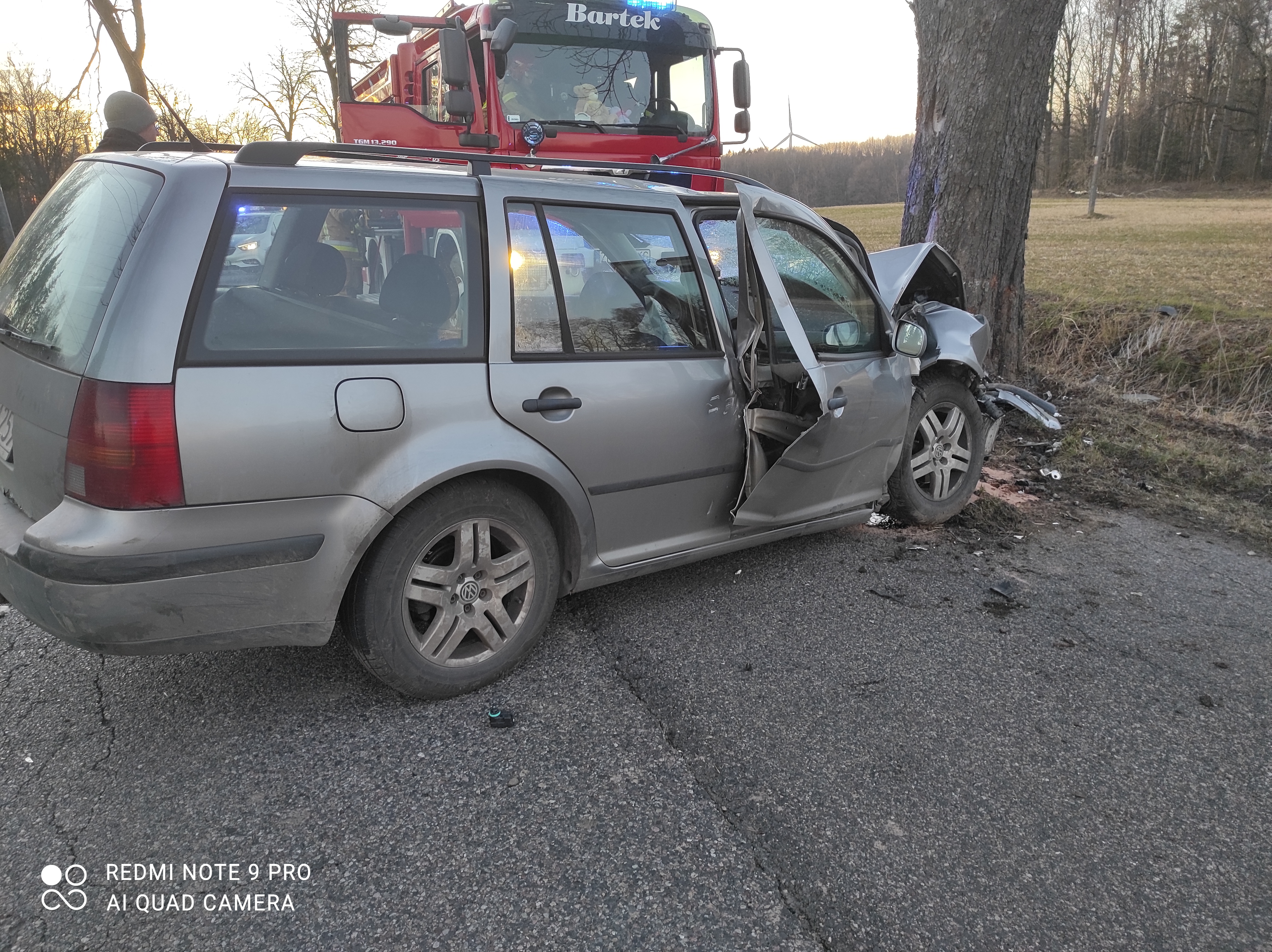 W wyniku przeprowadzonego rozpoznania okazało się, że w nie wyjaśnionych dotąd okolicznościach kierujący samochodem marki VW Golf 42-letni mężczyzna stracił nad nim panowanie, po czym zjechała z drogi i czołowo uderzył w przydrożne drzewo. Aby wydostać rannego kierowcę z uszkodzonego pojazdu zaszła konieczność użycia przez strażaków sprzętu hydraulicznego. Po wstępnym zaopatrzeniu poszkodowana w wypadku osoba została przekazana przybyłym na miejsce ratownikom z ZRM, którzy po szczegółowym zbadaniu podjęli decyzje o przewiezieniu jej do szpitala. Czynności wyjaśniające prowadzą kołobrzescy policjanci.