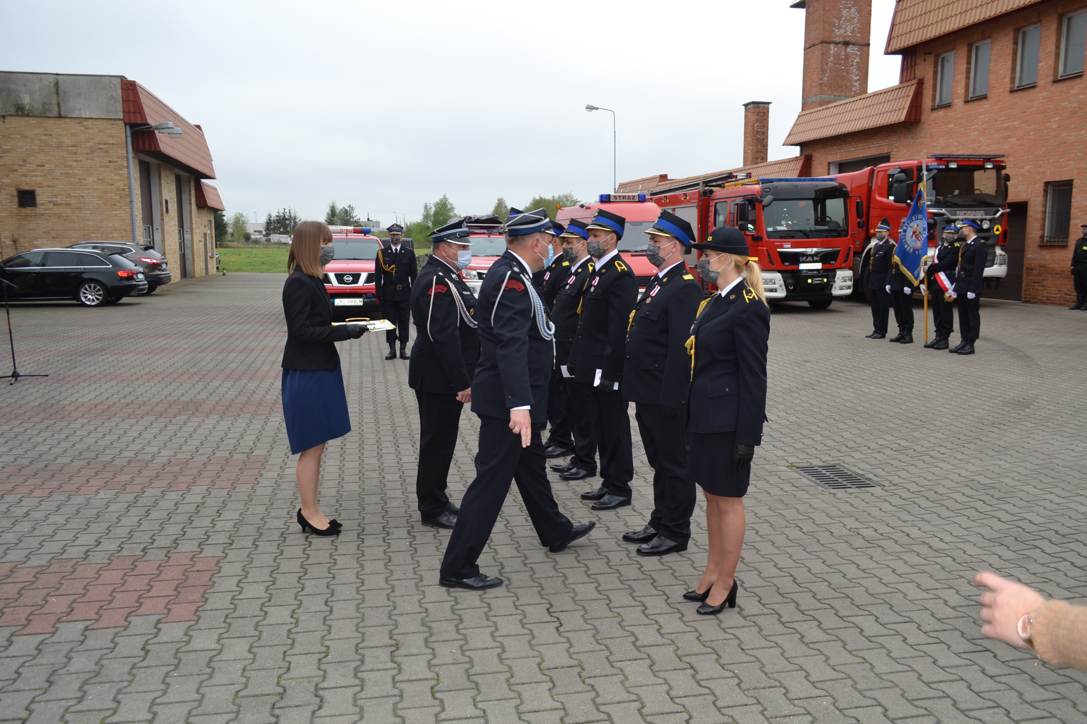 Obchody Dnia Strażaka ograniczono do uroczystej zbiórki na placu wewnętrznym Komendy Powiatowej PSP w Kołobrzegu z zachowaniem wszystkich reżimów sanitarnych. W uroczystej zbiórce uczestniczyli pracownicy i funkcjonariusze KP PSP w Kołobrzegu oraz zaproszeni goście: