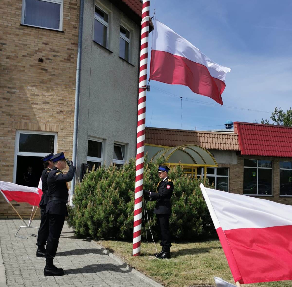 Pierwszym punktem uroczystego apelu było złożenie meldunku Zachodniopomorskiemu Komendantowi Wojewódzkiemu PSP nadbrygadierowi Jarosławowi Tomczykowi. Meldunek złożył dowódca uroczystości mł. bryg Paweł Kapica. Następnie Pan Komendant w asyście dowódcy dokonał przeglądu pododdziału. Po złożeniu meldunku nastąpiło uroczyste podniesienie flagi państwowej.