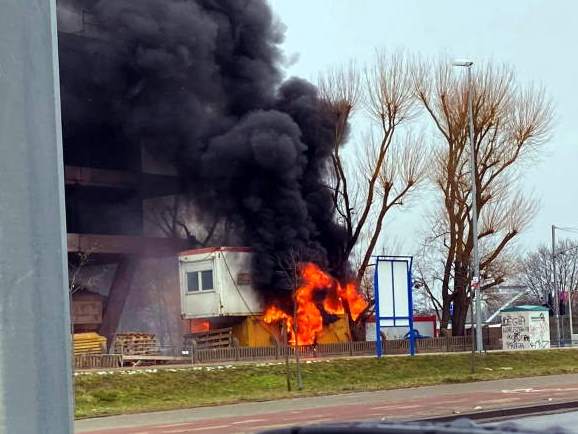 Natychmiast na miejsce zdarzenia zadysponowane zostały trzy zastępy z JRG. Po przybyciu na miejsce okazało się, że pożarem objęte są dwa kontenery socjalne usytuowane na terenie placu budowy.
