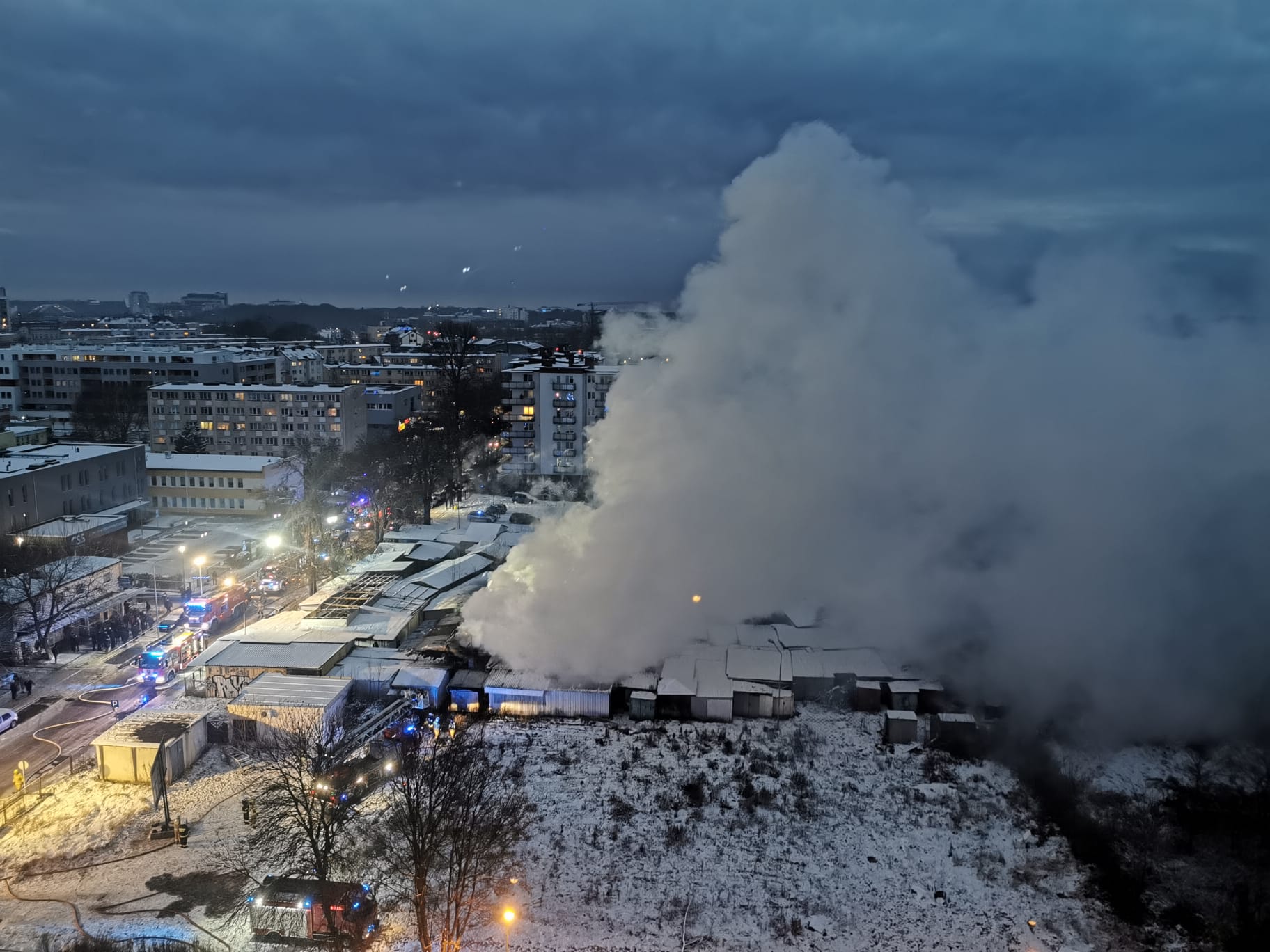 Tragiczny pożar na bazarze przy ul. Okopowej w Kołobrzegu