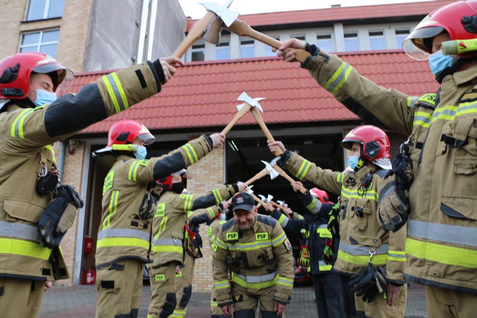 Uroczystą zbiórkę załogi, zgodnie ze strażacką tradycją choć w okrojonej obsadzie, poprzedził okolicznościowy szpaler, w skład którego weszli nieliczni pracownicy Komendy Powiatowej oraz Jednostki Ratowniczo - Gaśniczej w Kołobrzegu.