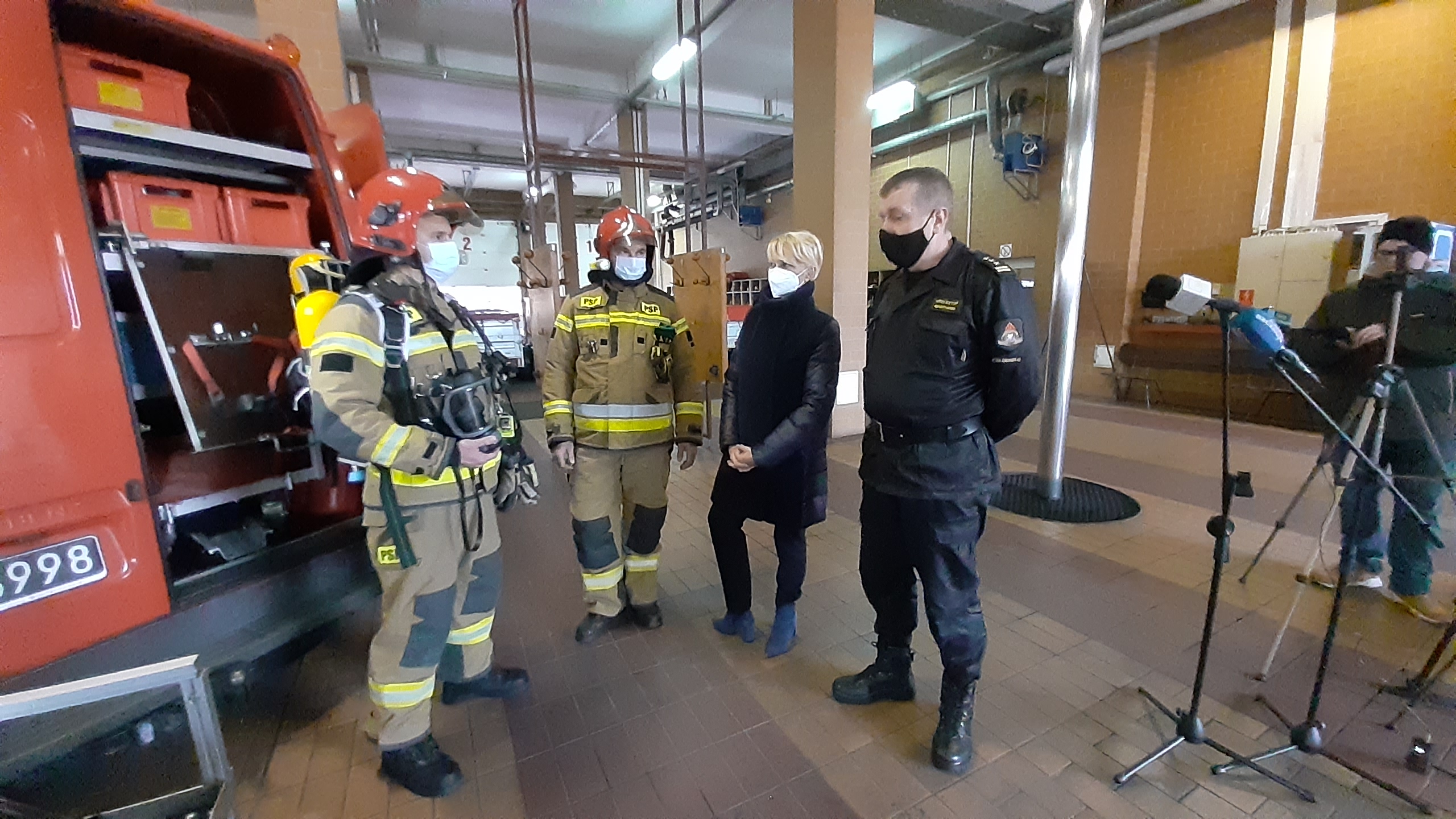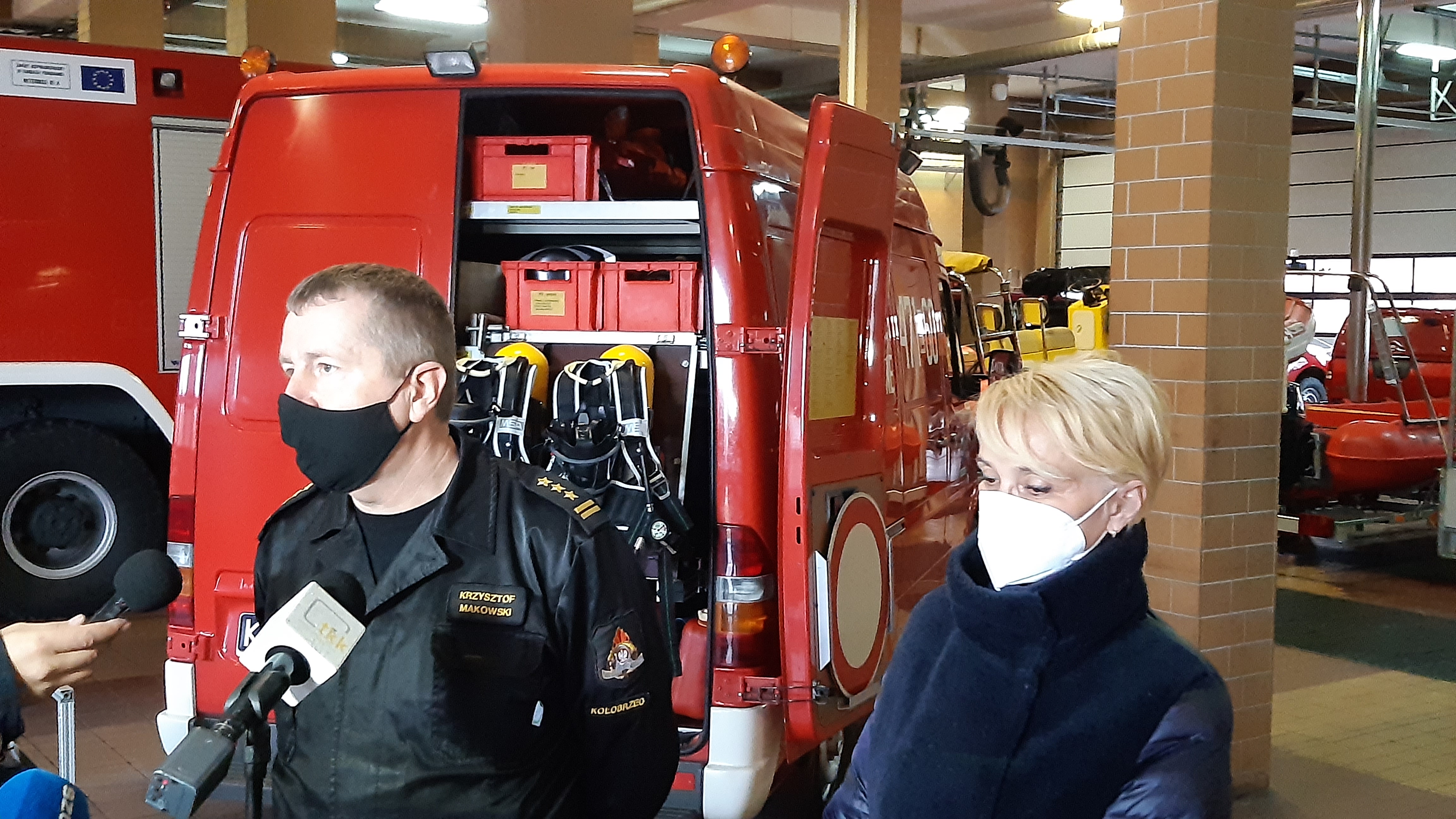 Z rąk Pani Prezydent miasta Kołobrzeg Anny Mieczkowskiej kołobrzescy strażacy odebrali, zakupiony dzięki wsparciu Urzędu Miasta, sprzęt ochrony dróg oddechowych.