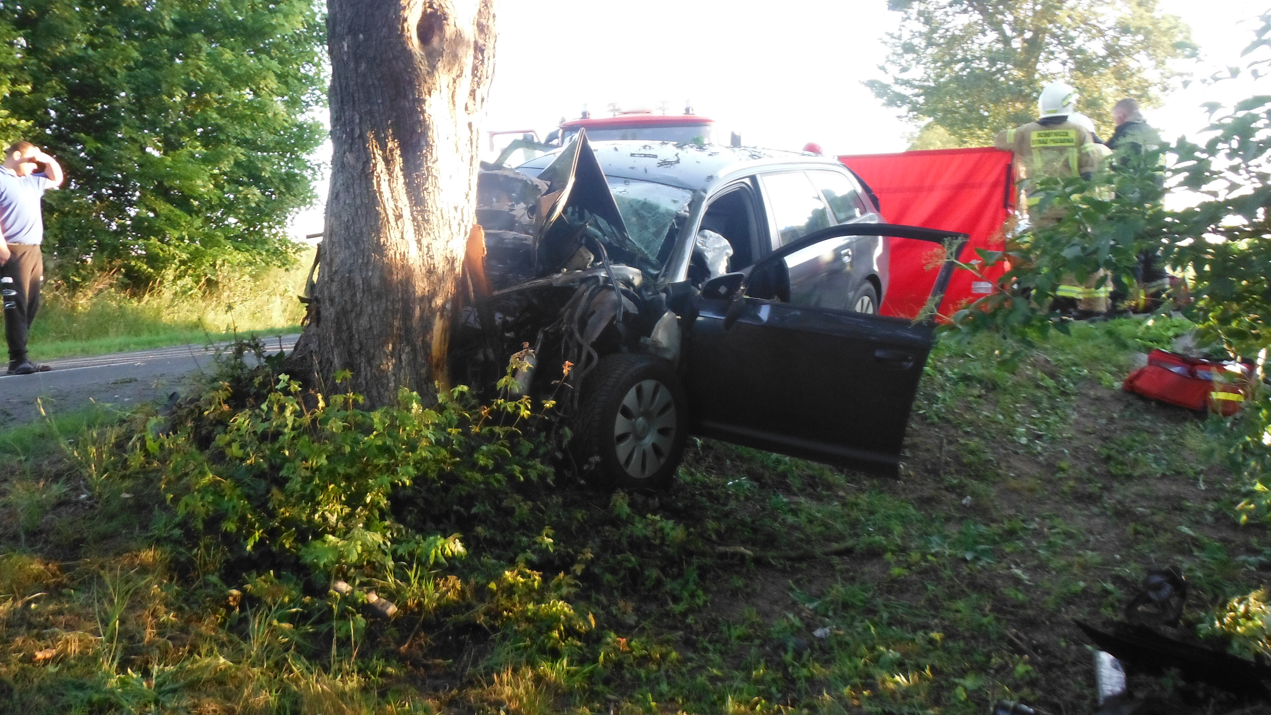 W niewyjaśnionych dotąd okolicznościach osoba kierująca samochodem marki AUDI straciła panowanie nad pojazdem, który zjechał na pobocze drogi, a następnie z dużym impetem czołowo uderzył w przydrożne drzewo. Niestety w wyniku odniesionych obrażeń kierujący pojazdem 30-letni mężczyzna poniósł śmierć na miejscu. Aby wydostać ofiarę z doszczętnie zniszczonego pojazdu, zaszła konieczność użycia przez strażaków specjalistycznego sprzętu tnąco - rozpierającego. W działaniach ratowniczych trwających blisko 1,5 godziny udział brały ogółem 3 zastępy straży pożarnej z JRG Kołobrzeg, OSP Siemyśl i OSP Charzyno. Czynności związane z ustaleniem przyczyn i okoliczności wypadku prowadzi kołobrzeska policja i prokuratura.