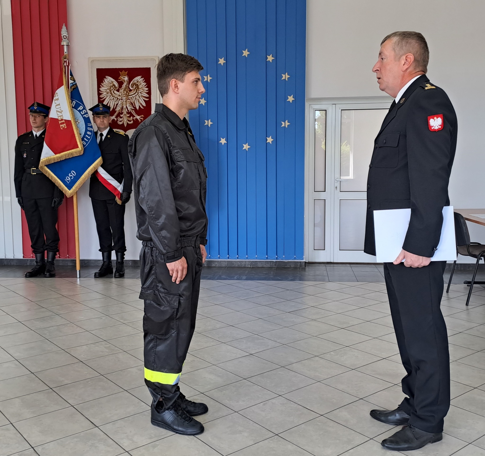 W dniu 7 lipca br. w siedzibie Komendy Powiatowej PSP w Kołobrzegu miała miejsce uroczysta zbiórka załogi z okazji uroczystego ślubowania przyjętych do służby nowych strażaków a także wręczenia nominacji na nowe stanowiska służbowe.