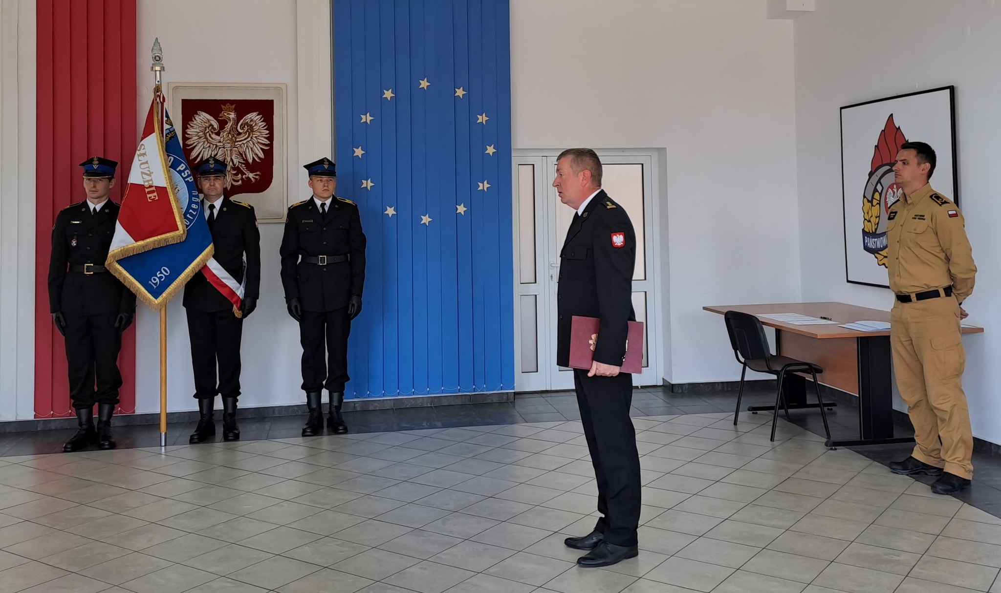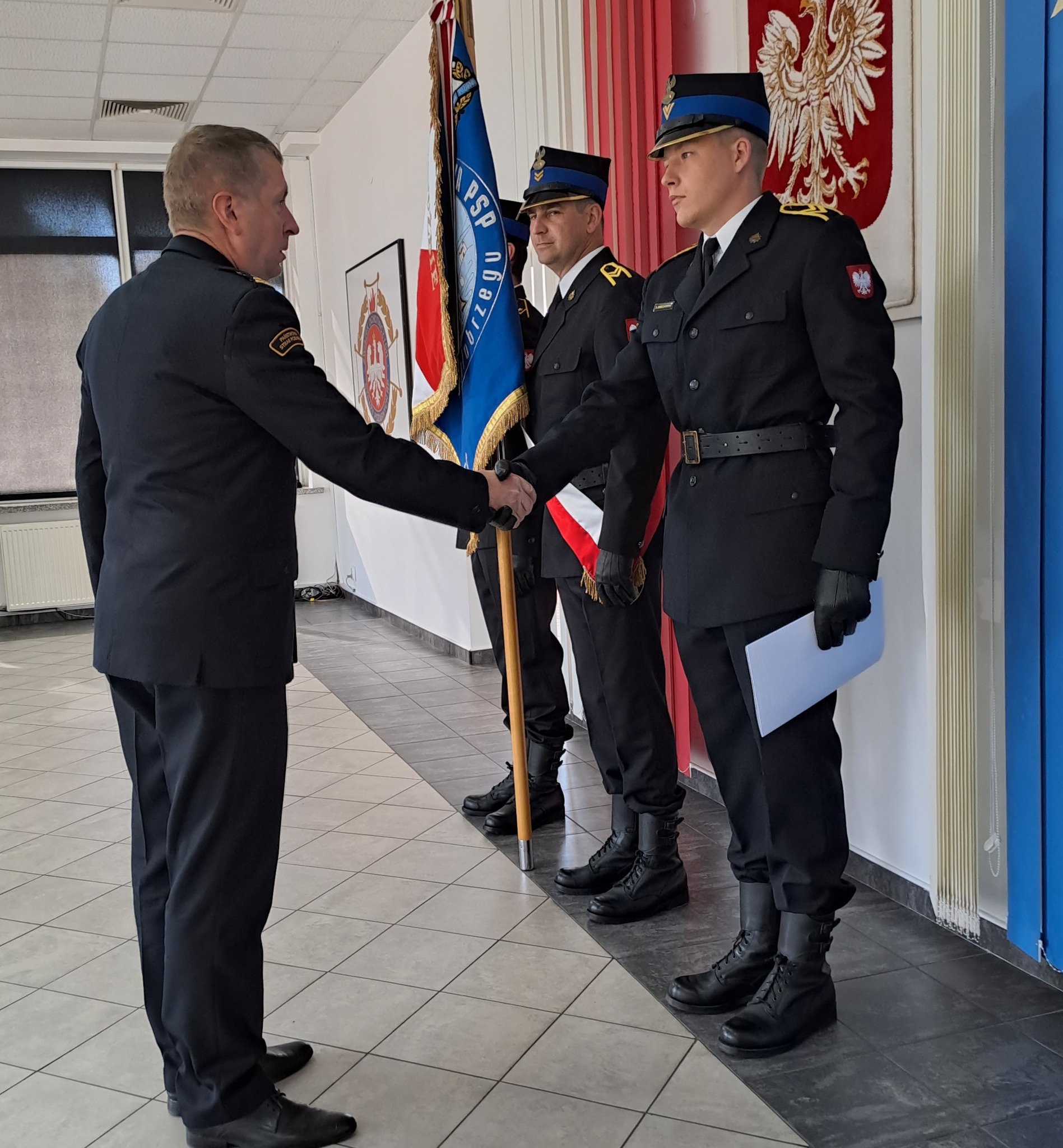 W trakcie uroczystego spotkania Komendant Powiatowy Państwowej Straży Pożarnej w Kołobrzegu, st. bryg. Krzysztof Makowski, wręczył mianowania (z dniem 1 lipca br.) na nowe stanowiska służbowe: