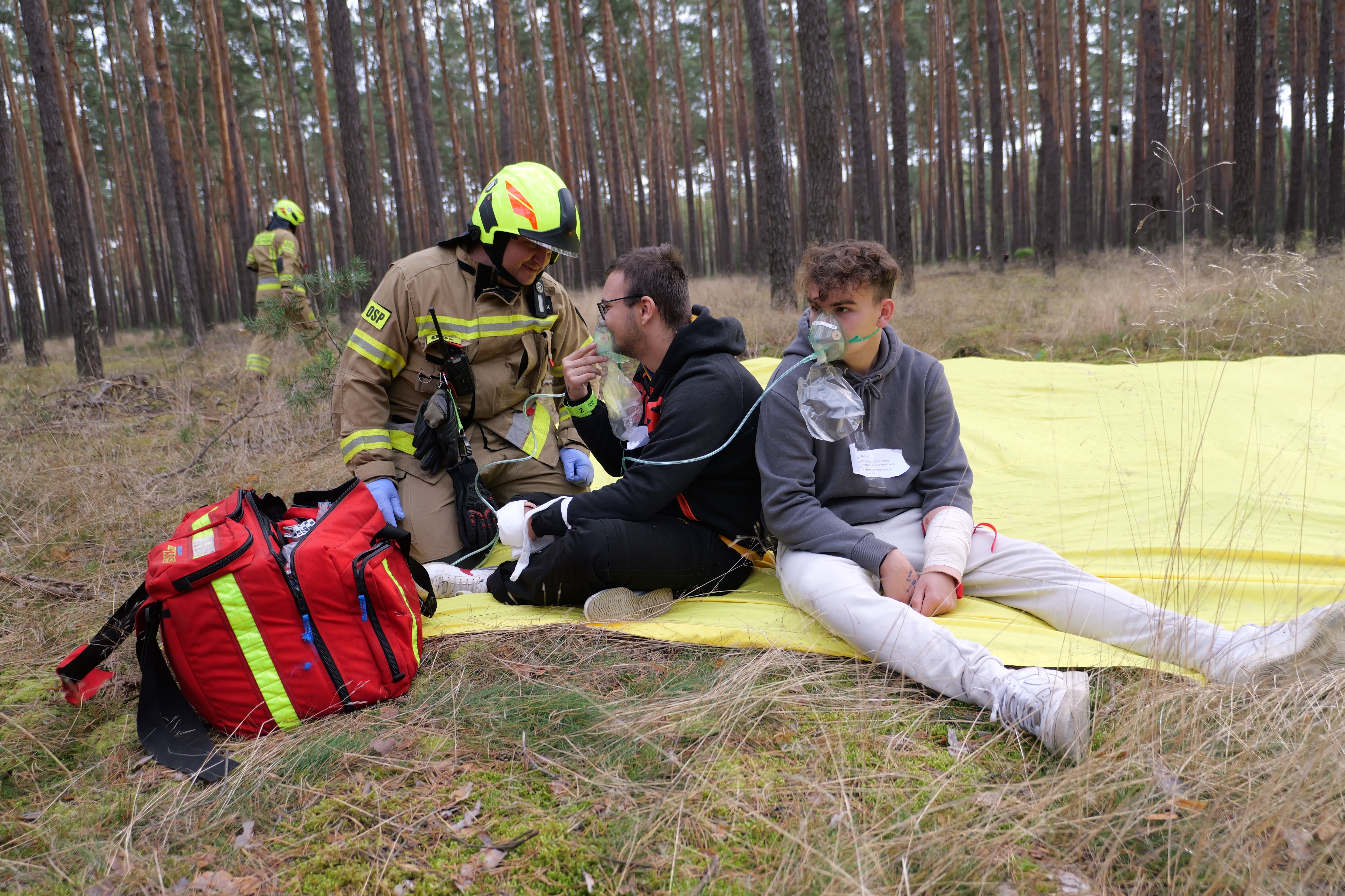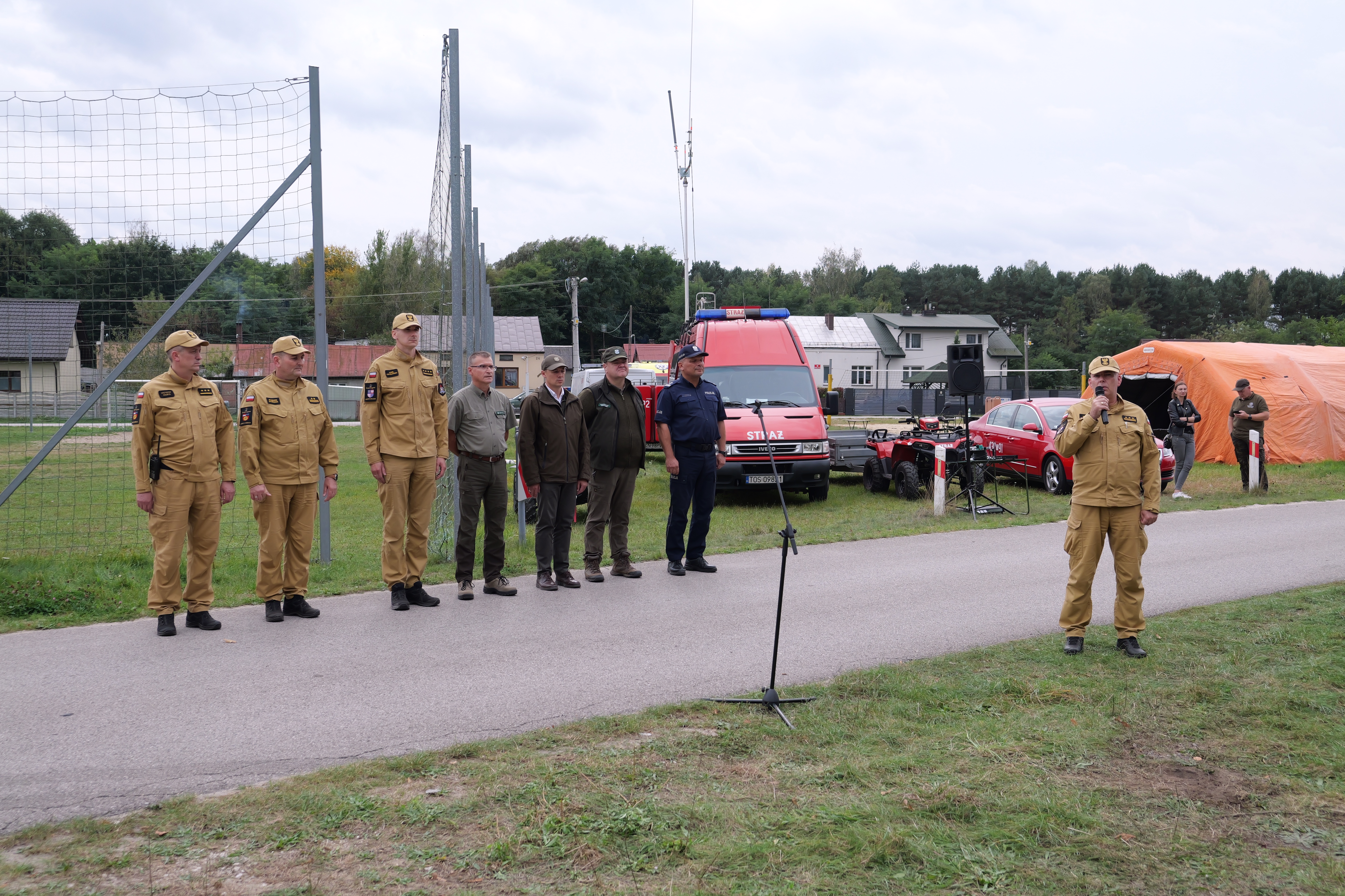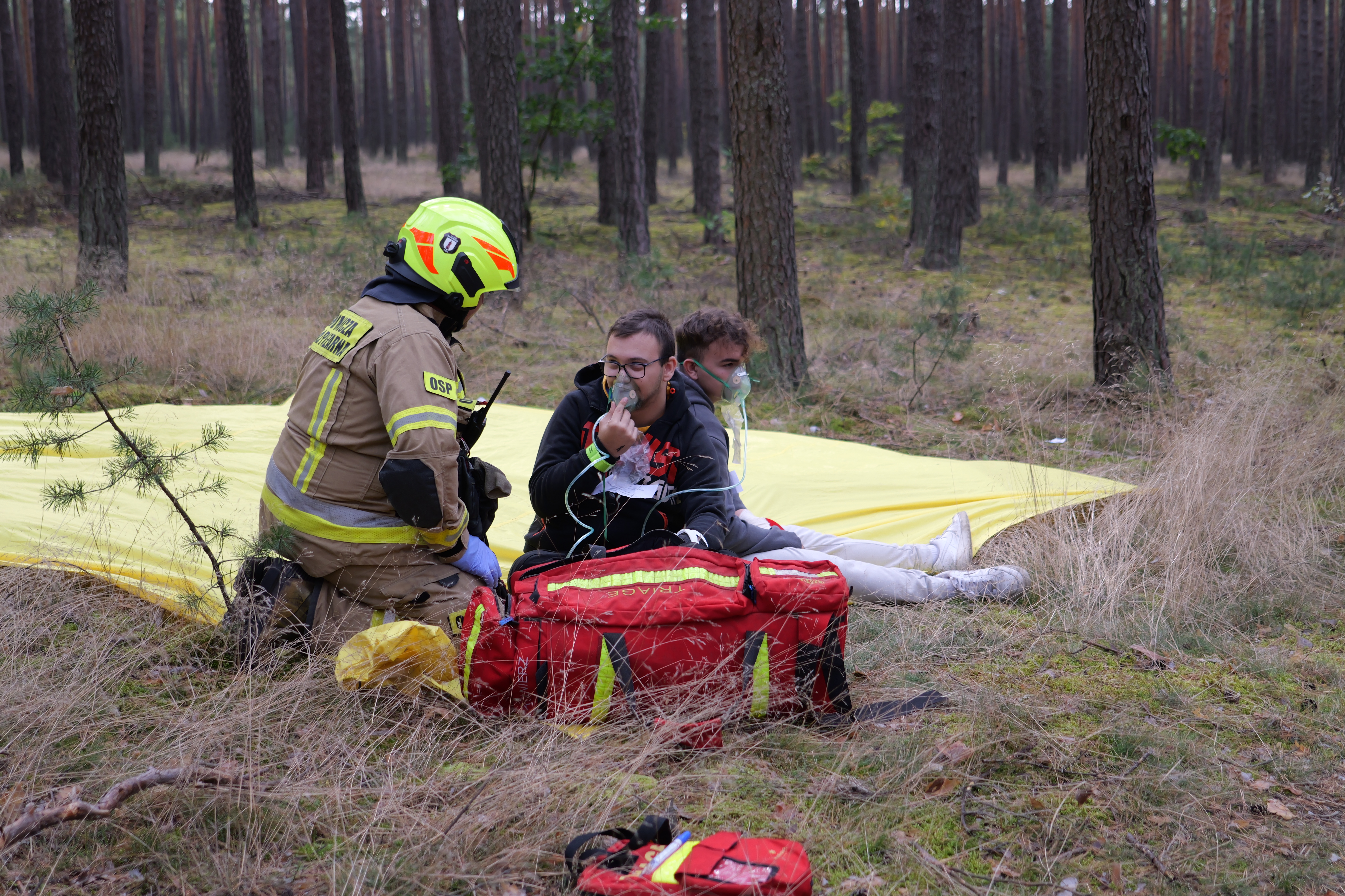 Na skutek załamania pogody grupa harcerzy podejmuje ewakuację z obozu harcerskiego zlokalizowanego w lesie nieopodal południowej części zalewu sielpeckiego. Kilku z nich doznaje obrażeń porwanymi przez wiatr luźnymi elementami wyposażenia oraz połamanymi konarami drzew. Ponadto rybacy pozostawiają ognisko w pobliżu obozowiska doprowadzając do pożaru lasu stwarzającego zagrożenie dla pozostałych w obozowisku rówieśników. Takie założenie realizowane było przez 2 zastępy z Jednostki Ratowniczo - Gaśniczej w Końskich i 5 zastępów Ochotniczych Straży Pożarnych. Strażacy musieli dokonać właściwej segregacji rannych w zależności od stopnia obrażeń. W tym samym czasie należało opanować pożar poszycia leśnego, który powstał od niezgaszonego ogniska.